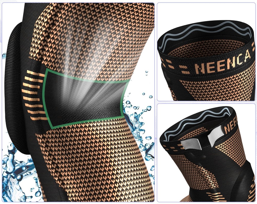 Copper Knee Brace for Knee Pain, Knee Support with Patella Pad & Side Stabilizers, Compression Knee Sleeve for Sport, Workout, Arthritis, ACL, Joint Pain Relief, Meniscus Tear- FSA/HSA Eligible đ Best Relief Idea For Your Friends And Family! đâ Professional Copper Knee Brace with Copper Ions Infused Fiber Technology: Real 24% Copper Ions Infused Fiber + 21% Nylon +16% Polyester. Compression Knee Sleeve for Pain Relief and Sports Protection - Anti Slip, Day & Night Wear. FSA/HSA Eligible, Class 2 Medical Device â Doctors Recommend. EXCLUSIVE PATENTâ Copper Ions Infused Technology: Real 24% Copper Ions Infused Fiber + 21% Nylon +16% Polyester. Spring knee support technology: An anatomically contoured patella gel pad surrounds the kneecap, dual metal spring stabilizers fit tightly with your knee joint. These special functional elements strengthen side support and maintain joint stability. It effectively disperses pressure, keeping knee warm, lubricating your joints. BEST CHOICE for sports protection and pain recovery. UPGRADED DESIGNâ Overcome the defects of similar products, medical knee braces with no allergies and itchiness. Metal spring stabilizers on both sides and patella gel pad won't fall off easily during using. 3D structure of woven, high-precision knitting cutting technology. Ergonomic: with high-elastic breathable compression fabric to 360° fit tightly with your kneecap curve. Non-slip gel strips and high-elastic copper fabric to avoid slide or roll during exercise, It will stay in place all day! INNOVATIVE TECHNOLOGYâ High copper fiber fabric has the effect of keep knee warm and reduce stiffness, reducing inflammation and swelling, increase oxygen flow. This copper knee brace disperse the pressure and improves circulation around your knee area, It will wrap around the patella to enhance the stability of kneecap and relax tendons, avoid pulling, prevent muscle strain. So it will prevent potential sports injuries without sacrificing your performance, PERFECT for pain relief and recovery! COMFORTABLE EXPERIENCEâ We got a well balance between compression and comfort, premium copper knee brace will apply even compression for your joint, which will significantly relief knee pain. The air knit fabric can instantly absorb and evaporate lots of sweat, circular breathing. Breathable, fast-dry and lightweight. You can wear it under trousers and sleep with it, thicker than other knee protectors to provide extra reinforcement without sacrificing comfort, so you can wear it all day long! TRUSTED BRAND & MULTIFUNCTIONâ is a professional outdoor supplies manufacturer, which occupy the first position of medical equipment for so long. Widely used in many sports such as weightlifting, basketball, running, volleyball, gym, tennis, workout, hiking and more! Universal for men and women, suitable for both left and right thighs. Full for any reason, please refer to the size chart for selection.
