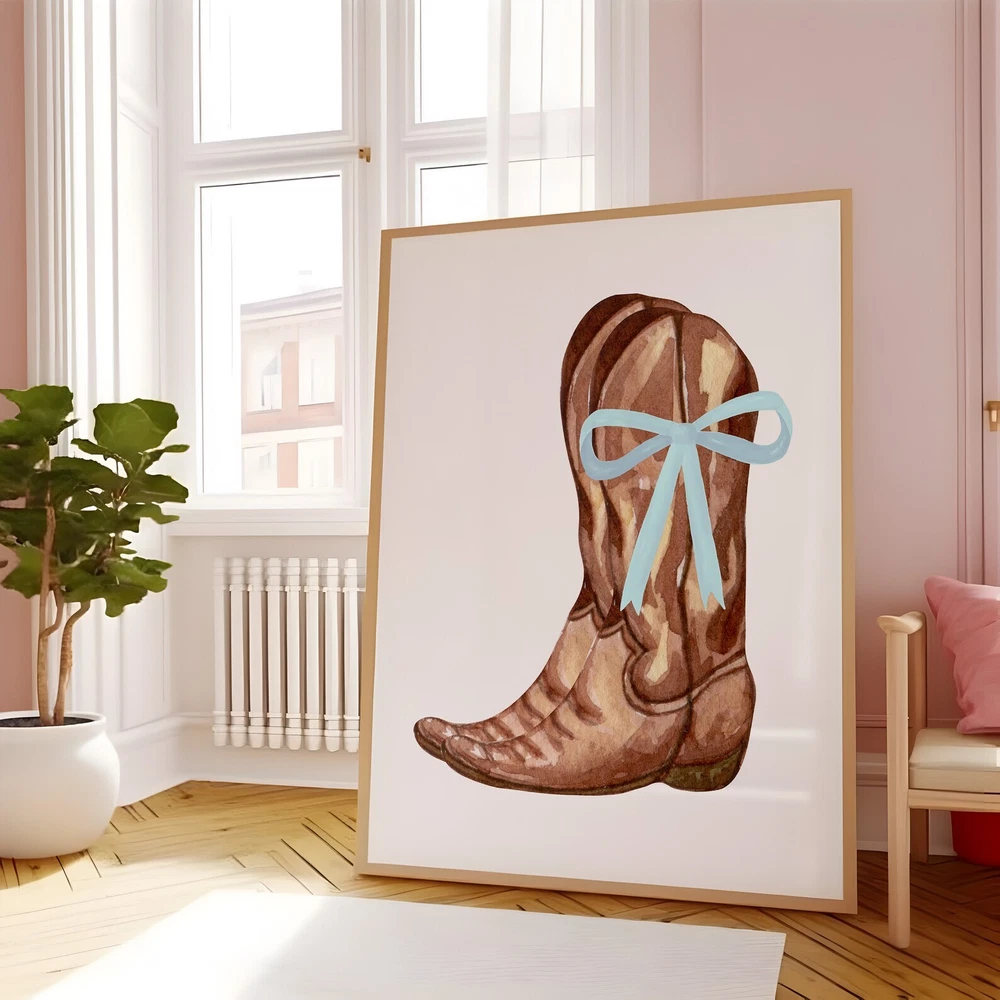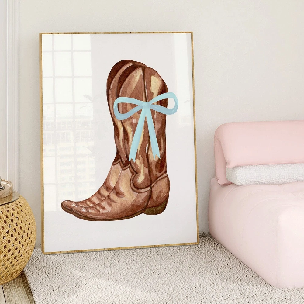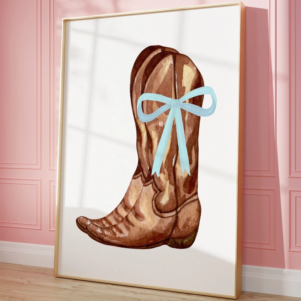 Coquette Cowgirl Coastal Room Decor Balletcore Wall Art Wall Art Bow Art Print Coquette Wall Art Bow Room Decor Coquette Aesthetic Coastal Material: Premium luster photo paper Print type: Inkjet printing One side printed + The finish provides the highest possible resolution and color saturation + Lasts up to 200 years in color and 400 years in black-and-white + Printed on high-quality resin-coated photo base paper medium + Posters can be hung with double-sided tape, tacks, or framed + Hand washing with a gentle cry cloth is recommended for extended durability I will hand select the best choice of paper for your chosen design to ensure top quality results for a beautiful, bright and luxurious print. All prints are sealed in cellophane slips for protection during transportation, and are shipped in a protective cardboard envelope.