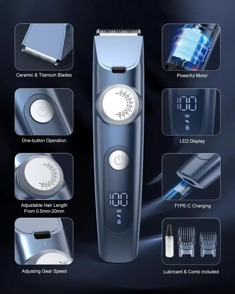 Cordless Beard Trimmer for Men Adjustable Hair Mustache Trimmer with LED Display Description: About this item 【High Quality】 Sejoy hair clipper uses a powerful motor and high quality carbon steel blades to cut easily and quickly without pulling hair. The tip section features a safe R-shaped blunt design that is skin-friendly. Professional zero gapped hair clippers for any man's hairstyling needs, this trimmer can be used at home or as a barber's hair cutting kit. 【0.5mm-20mm Length Adjustment】 This hair trimmer for men comes with two different length guide combs (0.5-10mm / 10.5-20mm), a free length adjustment dial and up to 40 precise length settings, so you can use it according to your desired hair length. The noise level during operation is less than 60 dB, so you won't be bothered by noise. 【TYPE-C Quick Charge】 Professional hair clipper is powered by a powerful lithium-ion battery that runs for at least 120 minutes after a full charge of approximately 90 minutes. Type-C charging port for connecting a USB adapter or other USB powered device. The cordless hair clipper's LED display clearly shows the percentage of battery remaining. 【Easy to use and clean】 The beard trimmer's blades can be easily removed and rinsed under the tap. It is recommended to clean any hair left on the blades with the included brush after each shave and haircut. Cordless and compact, lightweight and portable, the men's and women's hair trimmers are well made and durable for use at home or when travelling. 【Best Gift】 Designed to give you professional quality results in the comfort of your own home, this rechargeable hair clipper is not only for men and children, but also for pets and women. Great as a holiday gift, anniversary gift for someone you love!