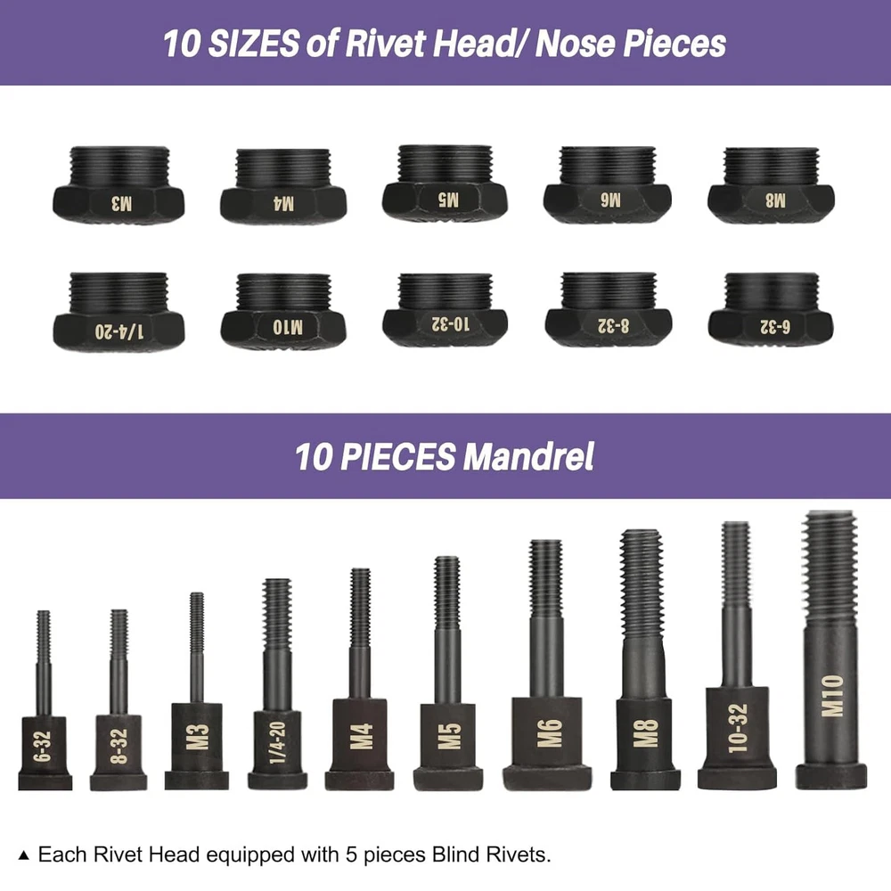 Store Categories Store Categories ✔️Auto Parts & Tools ✔️Ignition Wires ✔️Roof Racks & Cross Bars ✔️DVD Player & Home Projector Other Cordless Drill Electric Rivet Gun Adapter Rivet Nut Drill Adapter Kit w/ Case Description Features: ⚡[Powerful rivet adapter kit] The rivet adapter can be used with standard wireless drills and screwdrivers to transform into powerful nut rivet pliers (through a 1/4 "hexagon socket). For aluminum and steel rivet nuts, use wireless drills of 18V - 24V (All drills must be equipped with a torque limiter clutch). ⚡[10 Interchangeable Mandrels ] Size M3 M4 M5 M6 M8 SAE 6-32 8-32 10-32 10-24 1/4-20, with 10 Rivet Nuts to meet your various riveting operations. ⚡[Comfortable and Sustainable] The Electric Drill Adapter kit comes with a sturdy carry case for easy protection and storage of electrical drills, nuts, and rivets, and is very easy to transport. The high-quality aluminum-covered handles are non-slip and provide comfort. ⚡[Easy to Transport and Versatile] The Electric Drill Cover Adapter kit comes with a sturdy carry case for easy protection and storage of electrical drills, nuts, and rivets, making it easy to carry. They are suitable for installation and maintenance in buildings, cars, elevators, instruments, and furniture. DIY and hand are a good choice. ⚡[Product Includes] 1 Rivet Nut Kit Adapter (drill not included), 10 Interchangeable Mandrels (Size: M3 M4 M5 M6 M8 SAE 6-32 8-32 10-32 10-24 1/4-20), 10 Rivet Nuts, 1 Wrench, 1 Instruction Manual, and 1 Durable Storage Case.Note: M6 is already installed in the adapter. Specifications: Brand GATTLELIC Type Drill Adapter Kit Item Weight 3.12 pounds Item Dimensions 9.48 x 2.55 x 6.29 inches Material Aluminum, Alloy Steel Handle Material Aluminum Modification Description Does not apply Color Red 10 Interchangeable Mandrels Size M3 M4 M5 M6 M8 SAE 6-32 8-32 10-32 10-24 1/4-20 Features High Quality & Durable, User-Friendly Design, 10 Interchangeable Heads Size, Rugged Carrying Case Payment Shipping Returns Warranty Feedback Contact Us Payment 1. We accept payment from eBay Checkout System, you could pay with Paypal, Visa, Mastercard, American Express and Discover. 2. An invoice will be sent to the primary email address listed on your ebay profile within 24 hours of purchase or end of auction. Shipping 1. Handing time 1-3 BUSINESS DAY after payment has been received. 2. Click the "Shipping and Payments" tab to see shipping costs and estimated delivery dates. 3. Sales tax will be charged automatically by eBay side. 4. Tracking number will be updated within 12 hours after order is dispatched. 5. We don't ship to Post office Boxes, U.S. Territories or internatinal address. Returns The following terms will apply if you want to return items that you don't satisfy with. 1. All items must be applied within 30 days from the date of receive the package for a refund, we accept returns only in 100% NEW, UNUSED & UNINSTALLED condition; 2. The buyer is responsible for the cost of return shipping; 3. Please contact us for the return Authrization and return address, do not return items without contact us or your item may be refused and returned to you at your expense. Warranty 1. All items are coverd by 1-YEAR limited parts warranty. 2. If deffective, damaged or malfunctioning, contact us right away, so we can help solve the problem. We will exchange any defective merchandise for the same item, within 30 days we provide a label for paid return shipping. 3. After 30 days the buyer is responsible for all shipping costs associated with a warranty exchange. 4. Modifing an item in any way will void the warranty. Feedback We greatly appreciate your positive feedback. Please do Not leave negative feedback without asking for help. Our aim is to provide TOP-LEVEL customer service, so we will always try our best to solve any question or problem you have. Contact Us We strive for our customer satisfacion at best possible. If you have any question, please feel free to email us in anytime, we will reply you ASAP. If no response within 24 hours,Please check the spam in your mail box. Business Hours: Monday - Friday: 9:00 a.m. - 5:00 p.m. PST Saturday - Sunday: Closed. Holidays: Closed. Email: To send us a message click the "Ask a Question" link in Seller Info above Note: Please notice that no email will be replied during weekend and holidays. On Nov 14, 2024 at 02:07:20 PST, seller added the following information:
