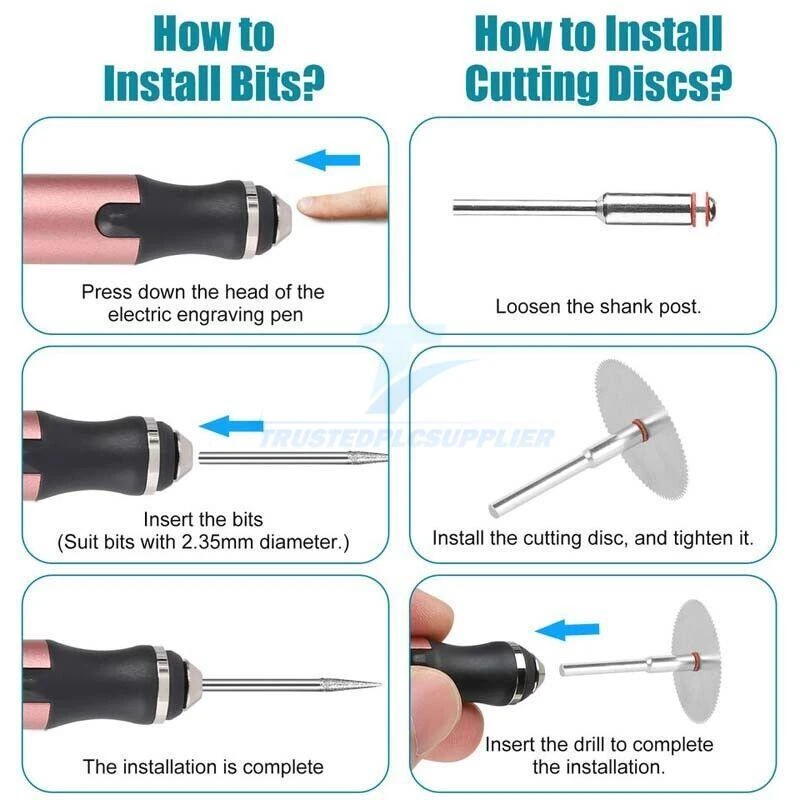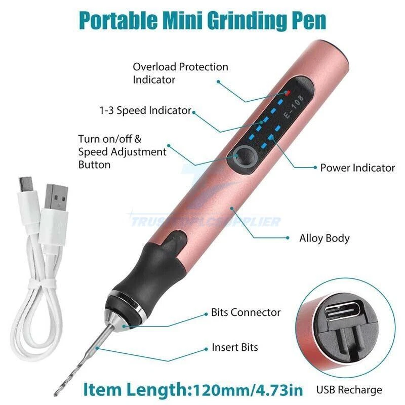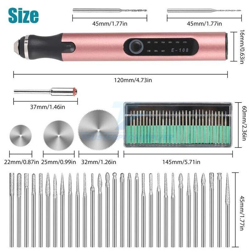 Product Description Cordless Electric Engraving Pen Rotary Tool Kit Variable Speed W/ 37 Accessories Feature: USB Charging Wireless Engraver: This engraving tool is equipped with a Lithium battery and rechargeable by a USB interface. Cordless use will take up to 30 minutes of idling after a full charge. Easy to help you finish a better-engraved craft. Adjustable Speed: 3 levels of speed can be adjustable from 5000-18000 r/min for different situations. The lowest speed will let you polish your nail in a safe, the highest speed is also working on metal carving. Various Grinding Bits: These metal engraving machine kits include 30pcs rotary bits,2 drill bits, 1 shank post, and 3 saw blades, all these bits are enough to work on engraving, carving, sanding, polishing, etching, routing, grinding, drilling, cutting. Unique Design&Intelligent Power-off: This DIY electric engraving pen is equipped with a power indicator, speed indicator, and overload indicator, which can know the usage of the engraving pen in real-time. When the working resistance is too large, it will automatically cut off the power to prevent it from damaging the engraving pen. Safe to use. Wide Applications: The electric engraver supports you to engrave, engrave, sand, polish, etch, mill, grind, drill, cut, and more on metal, glass, ceramic, leather, wood, stone, or statue work. Specification: Type: Electric Engraving Tool Quantity:38Pcs Color: Pink Power Source: USB charging Power:10W Voltage:4.2V Battery Type: Lithium battery Speed:5000-18000r / min Clamping Diameter:2.35mm Tool Length:120 mm/4.73 inch Battery capacity:300MAH Suitable for: all 2.35MM specification grinding heads, reducing drill, etc Fit for metal, glass, ceramic, leather, wood, stone, or statue work Application: engraving, carving, sanding, polishing, etching, routing, grinding, drilling, cutting Included: 1 x Electric engraving pen 1 x USB Charging Cable 30 x Rotary bits 2 x Drill bits 3 x Stainless Steel Cutting Discs 1 x shank post 1 x User manual About Us Payment Shipping Returns Contact Us 1. Unless specified otherwise, all our products are IN STOCK and are shipped from USA Local warehouse - Not Overseas! 2. We provide a 30 day Satisfaction Guarantee or your money back (provided items are in the same new and resaleable condition.) 3. We have a PayPal Verified Business Account, please buy with Confidence! 4. Every item will be tesrted before send.We know our products well and if we don't have the answers we will do our best to find them for you! 5. Our friendly team look forward to serving you! Your satisfaction is our No.1 Priority We will do our best to satisfacy you. 1.Paypal, Credit Card, G Pay etc, many payment way is accepted. 2.Please be sure your shipping address is correct before make a payment. 1.We will ship out the item within 1-3 business days after comfirming the payment, appreciate your patience. 2.If the items are broken on the way(we will check the orders clearly before we sent them),please contact us in 3 days you received it. We will send you a new one or refund your payment. 1.We stand behind every buyer.Items can be returned for exchange or refund within 30 days. 2.Please contact us when you have any confusion of our item, we will solve the trouble for you as soon as possible. 1.This is professional Seller.We will reply your message within 24 hours. 2.Please contact us whenever you have any question about the item. We will deal with it as soon as possible. 3. If you are unhappy with the item or our service,please Contact Us before leave feedback,just give me a chance,thank you! About Us 1. Unless specified otherwise, all our products are IN STOCK and are shipped from USA Local warehouse - Not Overseas! 2. We provide a 30 day Satisfaction Guarantee or your money back (provided items are in the same new and resaleable condition.) 3. We have a PayPal Verified Business Account, please buy with Confidence! 4. Every item will be tesrted before send.We know our products well and if we don't have the answers we will do our best to find them for you! 5. Our friendly team look forward to serving you! Your satisfaction is our No.1 Priority We will do our best to satisfacy you. Payment 1.Paypal, Credit Card, G Pay etc, many payment way is accepted. 2.Please be sure your shipping address is correct before make a payment. Shipping 1.We will ship out the item within 1-3 business days after comfirming the payment, appreciate your patience. 2.If the items are broken on the way(we will check the orders clearly before we sent them),please contact us in 3 days you received it. We will send you a new one or refund your payment. Returns 1.We stand behind every buyer.Items can be returned for exchange or refund within 30 days. 2.Please contact us when you have any confusion of our item, we will solve the trouble for you as soon as possible. Contact Us 1.This is professional Seller.We will reply your message within 24 hours. 2.Please contact us whenever you have any question about the item. We will deal with it as soon as possible. 3. If you are unhappy with the item or our service,please Contact Us before leave feedback,just give me a chance,thank you! You may also like 4 Gauge Car Audio Cable Kit Amplifier Install Amp RCA Subwoofer Sub Wiring 2300W 18.89 USD 0.99 USD 42 Tips 96W Universal Power Supply Charger for Laptop Notebook AC/DC Power 14.99 USD 15.99 USD 0.99 USD 6% off Oven Stove Igniter for Samsung DG94-00520A Fast Shipping 16.99 USD Free shipping 9PC ABS Socket Organizer 1/2 3/8 1/4 inch Drive Socket Rail Holders Wall Mount 18.49 USD Free shipping Car Steering Wheel Tray Desk Two Sided For Laptop Drink Food Work Table Holder 9.99 USD 0.49 USD Commercial LED Outdoor Dusk to Dawn Solar Street Light Road Area Lamp USA 21.99 USD 24.99 USD Free shipping 12% off powered by