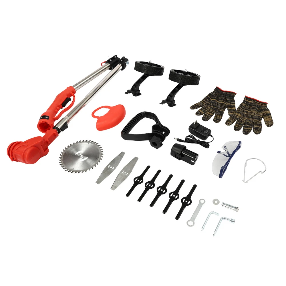 Specifications Material: ABS, Alloy, Plastic, SK5 Color: Black, Red Style: Modern Plug Type: US Standard Motor Type: Pure Copper Motor Power Source:Battery Powered Assembly Required: Yes AC: 100-250V 47-63Hz Current: 0.8A Output: 12.6V-1A Max. Motor Power: 200W Battery Type: 1*3 Cells 1300mAh Li-ion Battery (Included ) Rotational Speed: 18000rpm Operating Lever Adjustable Height: 0.9-1.25m/2.95-4.1ft Circular Saw Blade Diameter: 10.2cm/4in Charging Time: 1h Working Time: 15-20mins Head Adjustable Angle: 90° Product Height: 0.91-1.28m/3-4.2ft Each Wheel Diameter: 13cm/5.1in Distance Between Two Wheels: 23cm/9in Gross Weight: 1.8kg/4lbs Package Size: 89*15*15cm/35*5.9*5.9in 💖 WELCOME 💖 Description Traditional Trimmers That Are Gasoline -powered or Need to Be Plugged in for Use Are Uneconomical and More Restrictive in Use. Our Cordless Grass Trimmer with Rechargeable Lithium Battery and High-strength Blades Is an Excellent Assistant for You to Prune Lawns and Care for Your Lawn and Garden . Key Features High-quality Material: the Product Is Mainly Made of Abs, Alloy, Plastic, and SK5, Which Has High Hardness, Corrosion Resistance, High-temperature Resistance, Impact Resistance , and Long Service Life. High Efficiency: the High-quality 200w Pure Copper Motor Provides the Product with Super High Unloaded Speed (18000rpm), and the 4in-diameter Saw Blade Can Provide You with a Wider Cutting Range, Thus Improving Your Work Efficiency. Convenient to Use: It Is Equipped with Three Different Types of Blades to Meet Different Work Needs. Plastic Blades Are Suitable for Trimming Garden Lawns. the Leaf-shaped Alloy Blade Is Suitable for Trimming Weeds in Complex Terrain. the Circular Alloy Saw Blade Can Be Used to Cut Crops, Shrubs, Etc. Safety Protection: the Grass Guard Can Effectively Prevent the Broken Grass from Splashing Around When Mowing the Lawn and Prevent Accidental Trimming of Plants, Lawn Decorations, and Other Sensitive Areas of Your Yard, Together with Gloves and Goggles, Ensuring Your Safety. the Safety Switch Can Prevent Accidental Start-up and Ensure User Safety. You Need to Simultaneously Press the Safety Button and the Switch to Start the Machine. Comprehensive Mowing: You Can Press the Button on the Head to Adjust the Angle at 90° for Flexible Weed Removal in Edges and Corners, and It Will Automatically Be Locked When You Release the Knob. Automatic Line Feed: the Grass Trimmer Can Automatically Feed the Line As Needed and Works Smoothly Without Interruption. Cordless Convenience: with One 3 Cells 1300mah Li-ion Battery Allowing for Almost 20 Minutes of Continuous Working After About 1h of Charging , You Can Cover Larger Areas Without the Hassle of Tangled Cords or Cords Reaching Their Limit. the Equipped Charger Ensures Timely Charging for the Battery. User-friendly Design: the Operating Lever Can Be Adjusted to Different Lengths (2.95-4.1ft) by the Telescoping Button to Meet the Needs of People of Different Heights, Avoiding Bending down and Reducing the Burden on Your Waist. It Weighs Only 4 Lbs, Allowing for Operation with One Hand, Even for the Elderly and Women. Easy to Move and Store: It Is Foldable and Comes with Two Wheels, Making It Easy for You to Move and Store It, Taking up less Space. Guaranteed Customer Service: Our Friendly Customer Service Team Would Be Happy to Solve Your Issues with Our Product. If You Have Any Issues, Please Feel Free to Reach out to Us. Details Grass Retaining Ring: It Prevents the Rolled Grass, Reduces the Failure Rate of the Product, and Protects It for a Long Time. Auxiliary Handle: It's Comfortable with a Non-abrasive Grip and You Can Adjust Its Position As You like, Bringing You More Convenience During Operation. Heat Dissipation Hole: the Heat-sink Holes on the Housing Can Effectively Speed up the Heat Dissipation of the Motor to Ensure Smooth and Efficient Operation. Application It's Suitable for Yard Trimming, Park Greening, Home Lawn Mowing, Landscaping, Orchard Pruning, Tea Garden Pruning, Forestry Cutting, Cutting Rice/Wheat/Corn Stalks/Bush/Reed/Barley, Etc. How to Install Install the Grass Guard and Rotate to the Right. Tighten with a Wrench. Install the Blade. Mount Nuts& Washers. Tighten with a Wrench Head. Fasten the Two Wheels to the Left and Right Sides of the Operating Lever. Fix with Screws. Specifications Material: Abs, Alloy, Plastic, SK5 Color: Black, Red Style: Modern Plug Type: Us Standard Motor Type: Pure Copper Motor Power Source:battery Powered Assembly Required: Yes Ac: 100-250v 47-63hz Current: 0.8a Output: 12.6v-1a Max. Motor Power: 200w Battery Type: 1*3 Cells 1300mah Li-ion Battery (Included ) Rotational Speed: 18000rpm Operating Lever Adjustable Height: 0.9-1.25m/2.95-4.1ft Circular Saw Blade Diameter: 10.2cm/4in Charging Time: 1h Working Time: 15-20mins Head Adjustable Angle: 90° Product Height: 0.91-1.28m/3-4.2ft Each Wheel Diameter: 13cm/5.1in Distance Between Two Wheels: 23cm/9in Gross Weight: 1.8kg/4lbs Package Size: 89*15*15cm/35*5.9*5.9in Package Included 1* Cordless Grass Trimmer 8* Blades 1* Battery 1* Battery Charger 1* Goggles 2* Wheels 1pair* Gloves Other Accessories for Assembly Notes Please Charge the Batteries Fully Before the First Time You Use This Product. Please Pay Attention to Safety in Use, Wear Protective Measures, Stay Away from the Crowd and Your Body, and Avoid Being Injured by the Blade. Please Unload the Battery Immediately After Use to Keep the Power off. It Is Forbidden to Replace the Blade When the Power Is on! Please Allow the Slight Color Difference Caused by the Shooting Light and 1-3cm Error Due to Manual Measurement, and Make Sure You Do Not Mind Before You Order. Payment Delivery details Terms of sales About us Contact us Payment We accept ebay payment 。 Fees such as import duties, taxes are not included in the item price or shipping costs. These charges are the buyer's responsibility. Delivery details Shipping: 2-9 working days to: USA Terms of sales We maintain