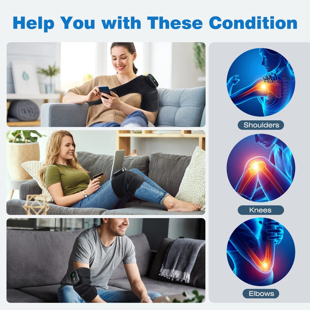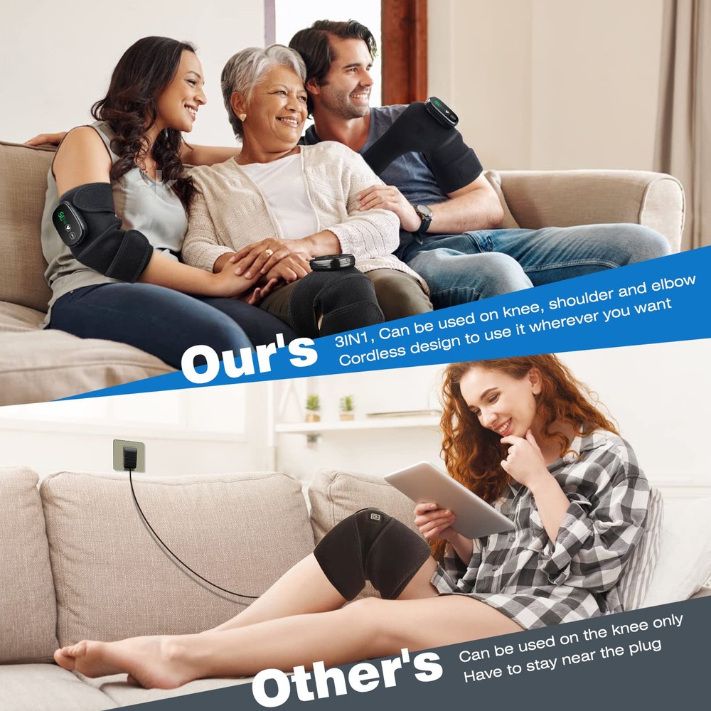 This knee massager is a game-changer! The adjustable heat and vibration settings provide deep relief for sore joints, and the cordless design makes it easy to use anywhere. Perfect for knees, elbows, or shoulders—it’s a must-have for anyone with aches or stiffness. The long battery life means no interruptions, and the snug fit keeps it secure while moving around. Highly recommend for pain relief and relaxation!