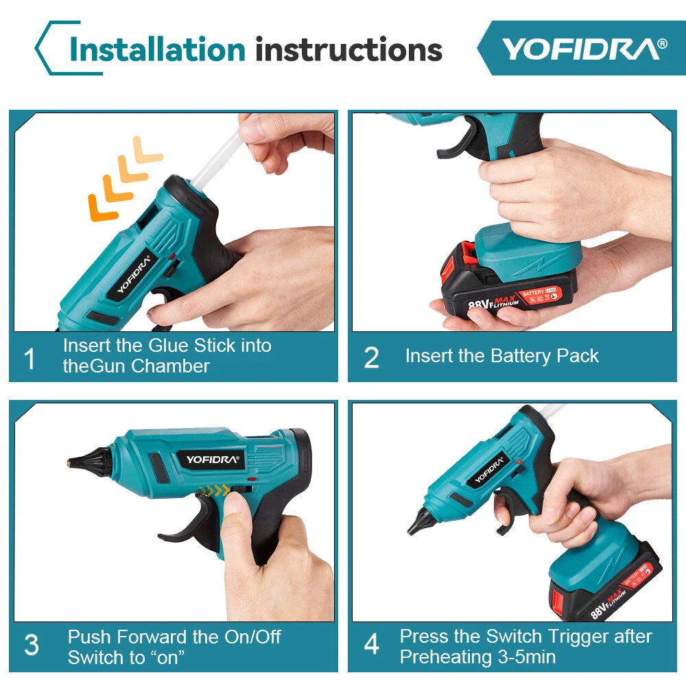 Store Categories Store Categories Impact Wrench Power Tools Other Welcome To Our Store Product Description Features: -Cordless rechargeable lithium battery, compact and easy to use. -It uses copper glue nozzle for smooth and continuous glue outlet, durable and rustproof, and the nozzle protection sleeve is designed to prevent scalding. -Ceramic PTV thermocouple, heating and extending the heating element to achieve rapid temperature rise, achieve really fast temperature rise, and achieve really fast glue release. -Built-in trigger push device, according to people's habit of operating the switch. -Intelligent chip escort, built-in chip control, control the heating temperature in a suitable range and prevent overheating. -It uses copper glue nozzle for smooth and continuous glue outlet, durable and rustproof, and the nozzle protection sleeve is designed t o prevent scalding. -Suitable for plastics, metals, wood, paper, toys, furniture, leather, DIY and other purposes. Specification: Voltage:18V Power:100W Material: Plastic + Metal Max.temperature:280℃ Glue stick size: 11mm diameter Battery capacity: 2*3000mAh Use scenarios: Repair toys Make handicrafts Repair household items Weld circuit boards Packaging and sealing Package Included: 1 x Glue Gun 10 x Glue Stick 2 x Battery 1 x US charger Please know before pla cing an order: Our power tools are compatible for Makita 18V batteries, this does not mean that it is an original product. Compatible for Makita 18V Battery: (Refers that our machines are compatible with the following battery models.) √ Compatible for 18V B series lithium battery, such as BL1850B (197285-8), BL1840B (197270-1), BL1830B (197602-2), BL1430B (197618-7), BL1820B (197487-6) √ Compatible for BL1850, BL1840, BL1440(196391-6), BL1415(194560-3), BL1815N(196781-3) Note: 1. Please allow 1-3cm error due to manual measurement. Please make sure you do not mind before you bid. 2. Due to the difference of light and screen, the color of the product may be slightly different from the picture. Please do not mind! 3. If you have any probl e ms with the product after receiving the goods, please contact us by email as soon as possible, we will give you a satisfactory solution. Please do not request a return directly or contact eBay or Paypal, if you insist on requesting a return, please choose the reason as "No Reason" or "Changed your mind". Finally, we ask that you do not leave us neutral/negative feedback, as this will not help to solve the problem. Thank you for your understanding! Payment Policy Shipping Policy Returns Policy Tems of sales Payment Policy 1. We accept PayPal only. 2. All major credit cards are accepted through secure payment processor PayPal. 3. Payment must be received within 7 business days of auction closing. 4. We ship to your eBay or Paypal address. Please make sure your eBay and Paypal address is correct before you pay. Shipping Policy 1. We ship to your eBay or Paypal address. Please make sure your eBay and Paypal address is correct before you pay. 2. Items will be shipped within 1-3 business day when we received payment. 3. Delivery time depends on destination and other factors; 4. International buyers please note: a.Import duties, taxes and charges are not included in the item price or shipping charges. These charges are buyer’s responsibility. We will try our best to reduce the risk of the custom duties. b.Please check with your country's customs office to determine what these additional costs will be prior to buying. Returns Policy 30-day returns. Buyer pays return postage Tems of sales 1. If you are satisfied, we sincerely hope that you can leave us a positive feedback and 5-star Detailed Seller Ratings, which are of vital importance to the growth of our company. 2. Besides, PLEASE DO NOT leave us 1, 2, 3 or 4-star Detailed Seller Ratings because they are EQUAL TO negative feedback. Like we said before, if you have any questions, please contact us first coz disagreement cannot settle problems. We really appreciate your support! 3. We Strive for Five Star 5/5 detailed rating positive feedback. If for any reason you are not satisfied please give us the opportunity to resolve the issue before leaving feedback or opening a dispute on Paypal or Ebay. Thank you! Copyright © 2023 Dianxiaomi