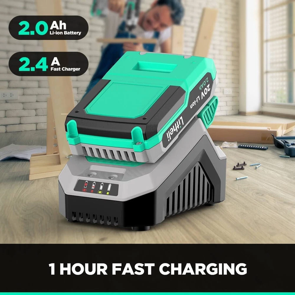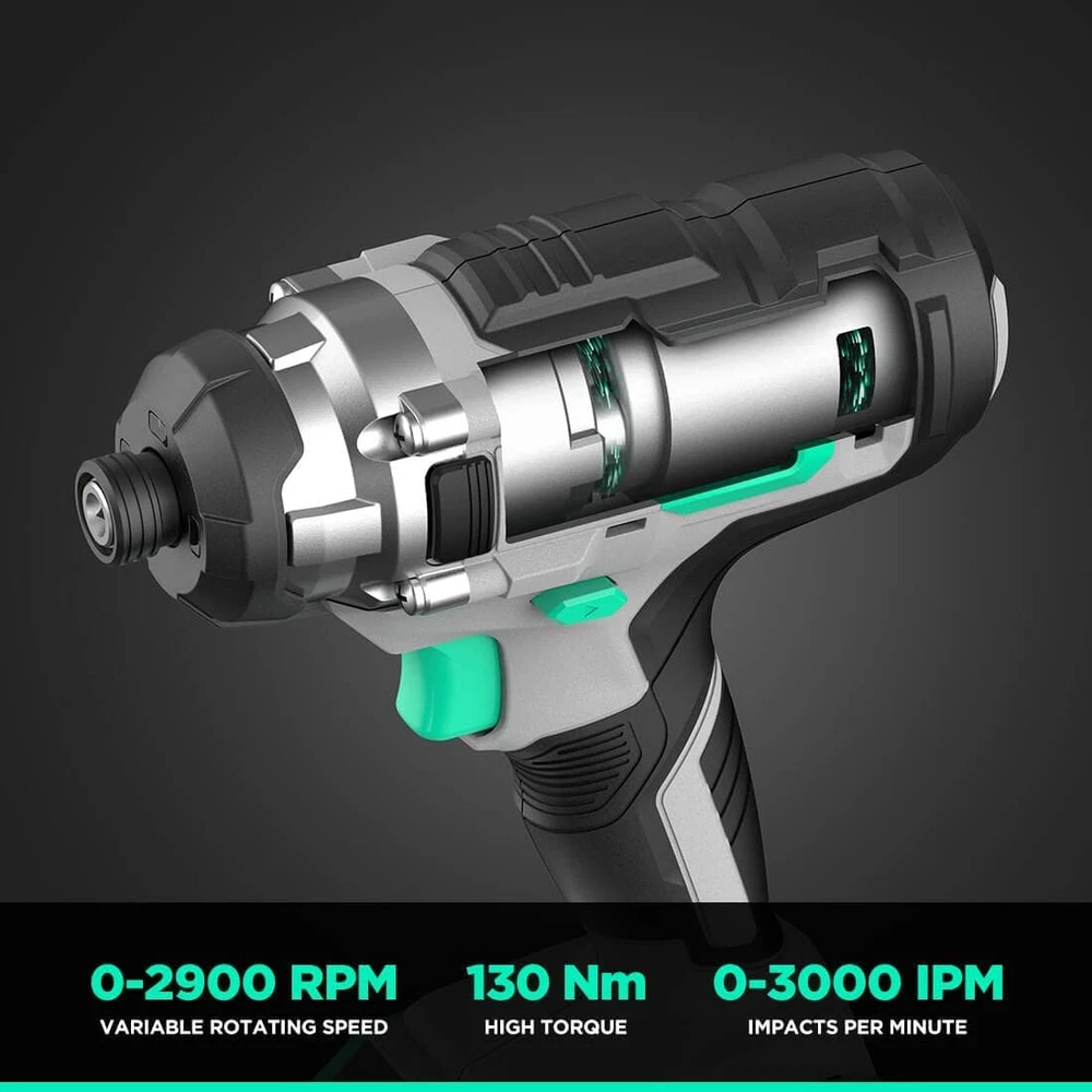 【Powerful Torque & Impact】cordless impact driver with powerful motor delivers strong torque up to 1150 in-lbs (130 Nm / 96 ft-lbs) and 3500IPM of impacts. 【20V Battery】2.0Ah Li-ion battery offers reliable power to ALL 20V power tools. This cordless impact driver has all industry-leading protections to ensure user safety. 【0-2900 RPM Adjustable】This impact driver can adjust the speed from 0 to 2900 RPM to suit different screws/bolts/nuts. Adjust the forward/reverse switch to change the rotation direction, and lock the impact driver by sliding the switch into the central position. 【LED Light & Lightweight Design】Rubberized handle ensures a soft and effortless grip. 3 LED lights on the head of the impact driver increase your visibility in any dark environment. Light weight design makes it effortless to be used for a long time. 【What’s Included】You will get: 5-year impact driver warranty and a 3-year battery & charger warranty, 1 × 1/4″ cordless impact driver, 1 × belt clip, 3 × 1/4″ hex socket adapters, 2 × driver bits, 1 × 2.0 Ah battery pack, 1 × 2.4 A fast charger, and 1 × operator’s manual. If any concerns, feel free to contact us.