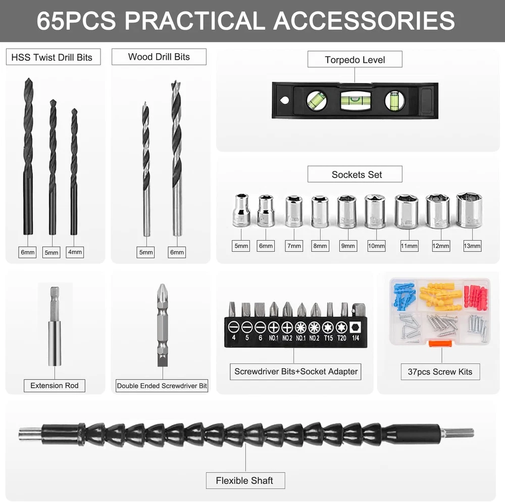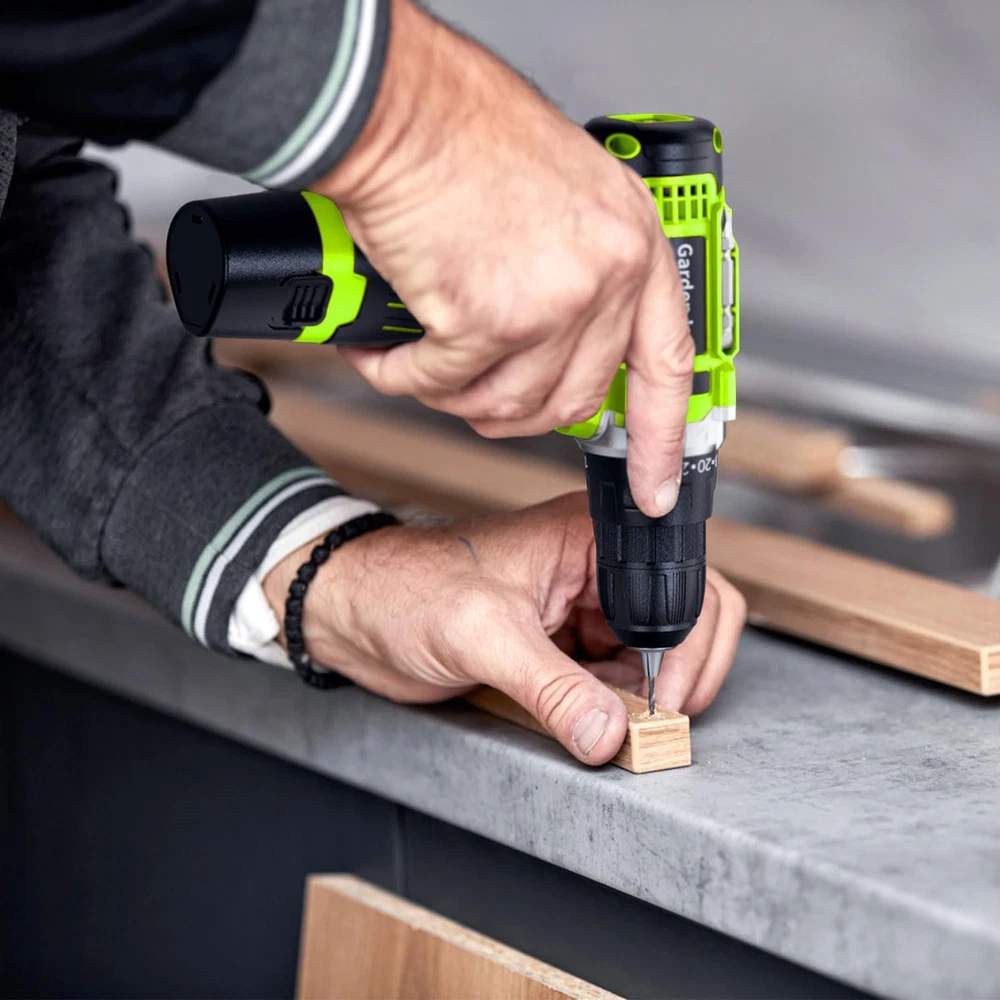 Store New Arrivals Add to Favorite View Feedback Contact Cordless Power Drill Set: 12V Electric Drill with Battery and Charger, 65Pcs Acessories, 3/8"Keyless Chuck, 2 Variable Speed, 24+1 Position, Compact Drill Driver Kit for Home & DIY Project Description Item model number FH-6912S Battery Cell Type Lithium Ion Maximum Power 18 Watts Power Source Battery Powered Country of Origin China Is Electric Yes Batteries Included? Yes Battery Capacity 1500 Milliamp Hours Item Torque 180 Inch Pounds Maximum Chuck Size 0.38 Inches Material Plastic, Metal Drill Type Basic Drill Number of Speeds 2 Batteries Required? Yes Item Weight 2 pounds Maximum Rotational Speed 1500 RPM Special Features Built-In LED Working Light, 2 Variable Speed & 3/8" Keyless Chuck, Rechargeable Battery & Fast Charger, 24+1 Torque Setting, Cordless, Portable & Lightweight Special Feature Built-In LED Working Light, 2 Variable Speed & 3/8" Keyless Chuck, Rechargeable Battery & Fast Charger, 24+1 Torque Setting, Cordless, Portable & Lightweight Amperage 1500 Milliamps Color Green Wattage 18 Watt-hours Batteries 1 Lithium Ion batteries required. (included) Voltage 12 Volts (DC) Included Components 12V Cordless Drill*1, 1.5Ah Battery*1, Fast Charger*1, Drill Bit*5, Screwdriver Bits*9, Socket Adapter*1, Extension Rod*1, Sockets*9, Flexible Shaft*1, Screw Kits*37, Torpedo Level *1, Double Ended Screwdriver Bit*1, User Manual*1 Speed 1500 RPM Product Dimensions 7.87"L x 2.36"W x 7.87"H Maximum Torque 180 Inch Pounds [MULTI-FUNCTION CORDLESS DRILL SET] GardenJoy power drill with superior motor, max torque 180 in-lbs(20N.m), It's perfect for drilling wood, metal, plastics, and all screw driving tasks at home, and many other DIY and craft projects. [24+1 POSITION CLUTCH AND 2 SPEED] Electric drill has 24 position clutch and drilling modes, it can provide more precise torque adjustment as required. Cordless power drill also has 2 variable speed setting (0-450 RPM or 0-1500 RPM). .[RECHARGEABLE BATTERY POWERED DRILL] This 12-volt electric drill is equipped with 1500mAh lithium-ion battery that can provide super use life, so you don't have to worry about running out of power in the middle of use. [LIGHTWEIGHT AND COMPACT DESIGN] Drill weighs only 2lbs, making it very easy to carry. Women can also easily use this power drill for drilling or screwing work. It's equipped soft rubber handle that is both non-slip and gentle to touch. [HIGH-PERFORMANCE WORKING] Built-in LED light for safety and reliability when working in dark or confined areas; Flexible shaft helps you to drill the places that are difficult to reach; Torpedo level helps you adjustments and calibration. [OUR DRILL/DRIVER KIT INCLUDE] Drill x 1, battery x 1, charger x 1, drill bit x 5, screwdriver bits x 9, socket adapter x 1, extension rod x 1, sockets x 9, flexible shaft x 1, screw kits x 37, torpedo level x 1, double screwdriver bit x 1, manual x 1. [FINEST BRAND CUSTOMER SERIVCE] Our machine has 12 month support, if you encounter any problems during using our cordless power drill, please contact us first time, we will reply within 24 hours. Product Description Enjoy Your New GardenJoy Power Drill Set Electric Drill with 65Pcs Acessories - Get DIY and Drilling Projects Finished! GardenJoy 12V battery powered drill Kit is perfect for tasks around the home. Whether you're decorating your home, assembling furniture, tending your garage and workshop, or performing daily office, home maintenance or drilling holes in wood, plastic and metal as well as driving in/out screw, this drill set has got you covered. EFFICIENT DRILLING This drill driver is powered by a powerful motor, providing a maximum torque of 180 in-lb which helps you set the right power to drill into wood, ceramics, plastics, and even metal with ease. The high speed setting is for drilling. QUICKLY SCREWDRIVING The battery powered drill has a 24+1 torque position clutch and 2-speed control setting which provides more precise control for driving in/out screws to prevent tripping. The low speed setting is for driving screws. 1 24+1 TORQUE SETTINGS 2 2 VARIABLE SPEED 3 FLEXIBLE SHAFT 4 SMART BATTERY PACK 5 PACKING LIST You can control the speed you need at any time. Screw direction will not deviate due to too fast starting speed. The forward/reverse switch allows screws driving or unscrewing with convenience. An LED work-light enabling you to safely drill in hard to see areas, LED light illuminates any dark work space. Improved ergonomics and rubber grip can effectively enhance the feel of your work to relieve fatigue. ABOUT US We offer the best prices around on high quality products. Our E-store includes media such as books, movies, music and games while offering electronics, toys, sporting apparel, clothing, tools, general home, garden items and more. SHIPPING We are always working hard to ensure your package arrives as soon as possible. Please understand that some factors like weather, high postal traffic, and the performance of shipping companies are outside of our control. We offer free shipping to the lower 48 states and ship within 2 business days of payment, usually sooner. We do not accept P.O. Boxes. Please provide a physical address. For shipping outside of the continental USA, we only use eBay's Global Shipping Program.The item is shipped to KY and then sent to the rest of the world. International customers are responsible for all duties and taxes. Continue to check out in order to calculate costs for shipping the item to your country. Messages regarding eBay's Global Shipping Program MUST be directed at eBay EXCLUSIVELY. RETURNS We offer a 30-Day Return Policy on items which you are not completely satisfied with. You have the option for a full-refund or an exchange of the item. No returns are available on items shipped outside of the USA. PAYMENT We accept PayPal. CONTACT US This page content is yet to come Please ad us to your favorite seller and visit again later Thank You CUSTOMER SATISFACTION We try our
