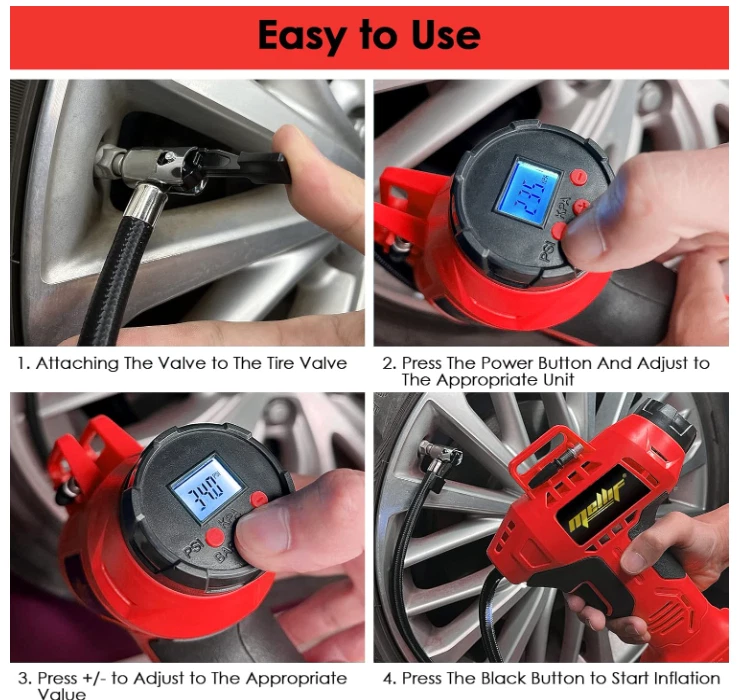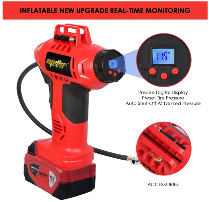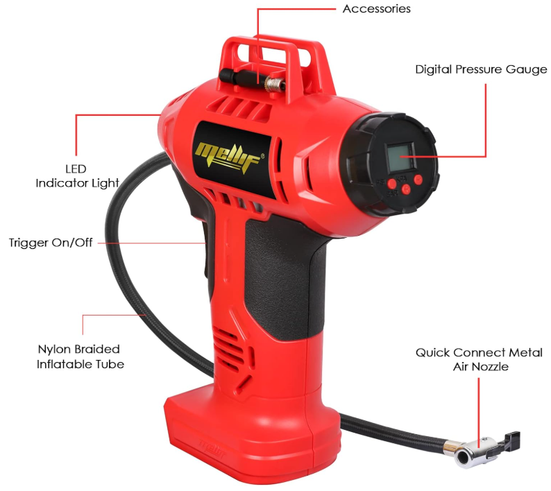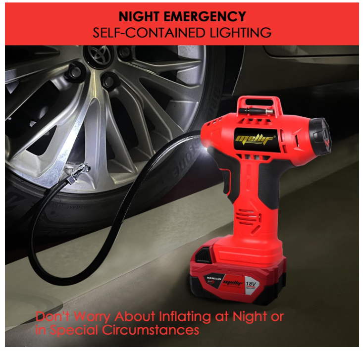 Cordless Tire Inflator Air Compressor Compatible with Milwaukee 18V Battery, 160PSI Portable Handheld Air Pump with Digital Pressure Gauge for Cars Motorcycles Bikes Sport Balls(Tool Only) Brand FORDWALT Voltage 18 Volts Recommended Uses For Product Tire Inflation Power Source Battery Powered Noise Level 78 dB About this item Cordless tire inflator: This tire inflator is powered by a battery(Battery and Charger NOT Included), perfect for both home and professional use Automatic Shut Off: Preset the desired pressure level and start inflating job. This car air compressor will shut off automatically at the desired level. There is no need to worry about over inflating, the accuracy of the indicated pressure is +/- 1 PSI Intelligent Display: Easy to read digital gauge provides accurate digital display. LCD screen will display the preset tire pressure value the air compressor will automatically shut off when the value is reached. The unit of air pressure can be switched among bar, kPa and PSI Metal Cylinder & Led Light: This cordless tire inflator is built with metal cylinders and gears. It can continuously work for 20 minutes and compress up to 160 PSI. This efficient compressor can quickly and easily inflate 4 tires. The LED work light allows you to inflate in the dark Durable & Lightweight: This electric tire inflator is made with wear-resistant nylon braided inflatable tube, anti-freeze not break, explosion-proof and high temperature resistant. Cordless design convenience for use almost anywhere Wide Application: This portable tire pump is equipped with the tapered adapter, valve extender, inflation needle, suitable for SUVs, cars, motorcycles, bicycles, sport balls and inflatable pool toys, etc. Note: It's not suitable for large truck tires . We offer FREE shipping on all orders! . We ship within Five business days of payment, usually sooner. . We use a selection of shipping services such as UPS, FedEx, USPS etc. . We only ship to the lower 48 states, no APO/FPO addresses or PO Boxes allowed. . Local pickups and combined shipping options are not provided at this time. . Your satisfaction is a wonderful reward for our efforts. Please assist us by leaving a positive review if you feel pleased with our service. . In the event that you encounter any difficulties related to your order, please do not hesitate to reach out to us directly through the Messaging system on the Ebay platform. Kindly consider opening a COMPLAINT or a RETURN REQUEST as a last resort, only after all other possible measures have been attempted and we have been unable to provide you with assistance. . We will get in touch with you within 24 hours and make every effort to ensure your satisfaction. . Please rest assured of our service quality.