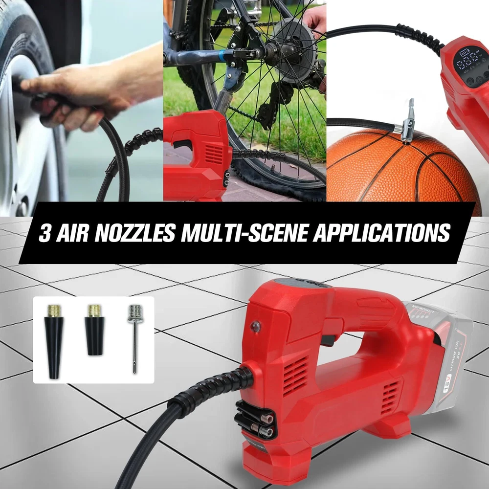 Specifications: Voltage:18V/20V Max Maximum Pressure 160psi Air Flow Capacity:35L / Min Suitable For Milwaekee M18 14.4V-20V Li-Ion Battery Model: 48-11-1811 48-11-1840 48-11-1850 2620 2630 48-11-1811, 48-11-1815, 48-11-1820, 48-11- 1822, 48-11-1828, 48-11-1840 Tool / battery protection system Overload protection Overheat protection Overdischarge protection Package Includes: 1 *Tire Inflator 3* Nozzles 1 * User Manual 【Compatible Battery】This heat gun powered by Milwaukee M18 14.4V-18V lithium battery model:48-11-1811 48-11-1840 48-11-1850 2620 2630 48-11-1811, 48-11-1815, 48-11-1820, 48-11- 1822, 48-11-1828, 48-11-1840(Tool Only, No Battery). This tool can work even outdoors. No need to worry about wires. 【Automatic shut-off & programmable inflation】 Press the "+" and "-" buttons to set the required pressure, which can be set between 20kPa (3PSI) and 1034kPa (150PSI). The car air compressor will automatically switch off when the set pressure is reached. No need to worry about over-inflation 【Digital Display&Fast Inflation】Equipped with HD display, you can accurately set the tyre pressure and mode. With a maximum pressure of 160 PSI and 35L/Min air flow, it has a fast inflation speed and can inflate a 195/55/R15 car tyre from 0 to 35psi in less than 5 minutes. 【Widely Use】Portable air compressor pump with 3 different air nozzles for a wide range of scenarios to quickly inflate cars, motorbikes, bicycles, balls, air pillows, cushions, balloons, swimming rings, mattresses, etc. 【Product Advantages】The tool is equipped with a tool/battery protection system. This system automatically cuts off the power supply to extend the life of the tool and the battery. And we offer a 30 day money back and a one year free warranty. If you have any concerns, please feel free to contact us. reply within 24 hours.