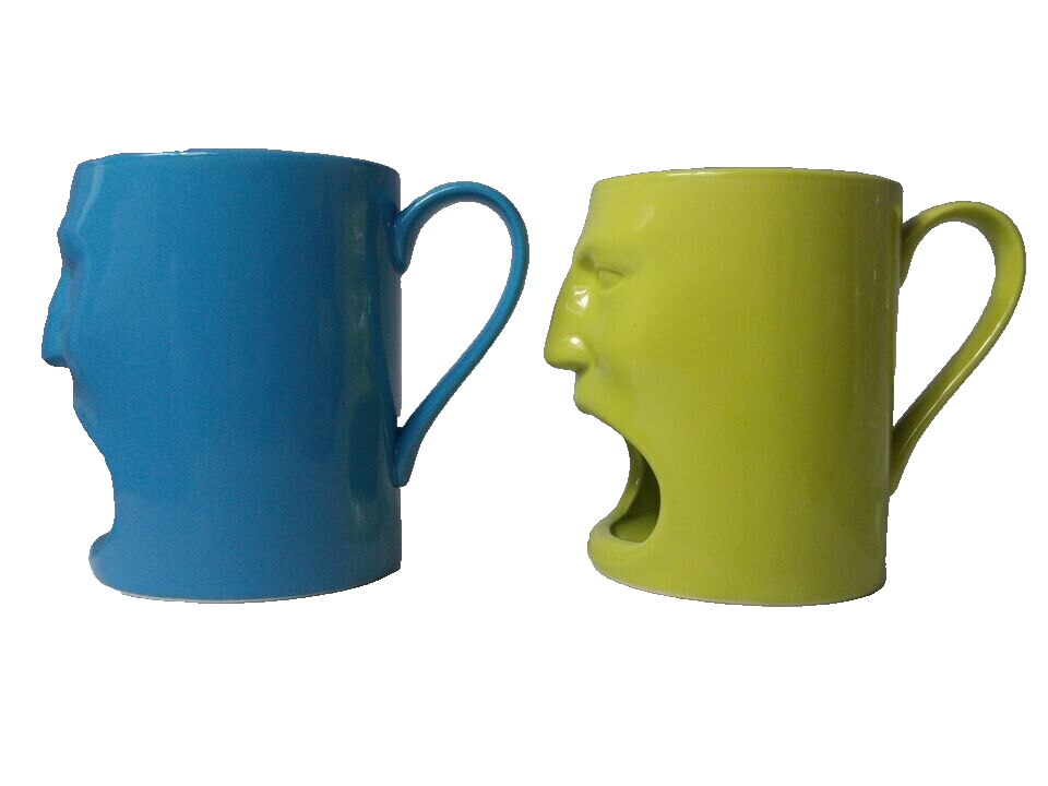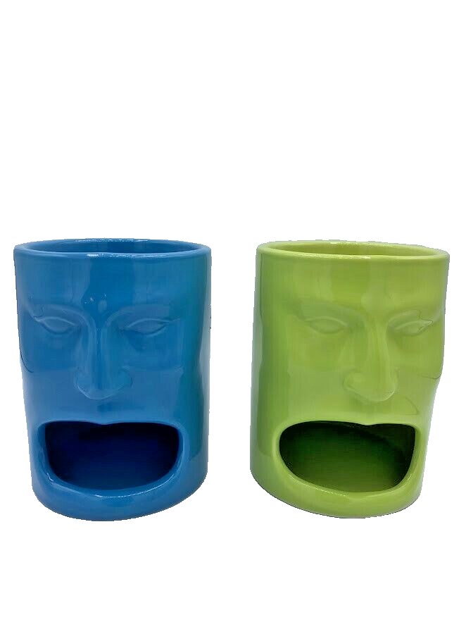 Perfect for milk & cookies! Enjoy your morning coffee or tea in style with this set of two Cordon Bleu Tiki Face coffee cups. These retired open mouth cookie holder mugs feature a solid Blue and Green color and are perfect for any occasion, especially retirement. The mugs are microwave, dishwasher, and oven-safe, making them convenient for everyday use. Measuring 5 inches in height and 4 inches in width, these mugs are the perfect size for your favorite hot or cold beverage. The set includes two coffee cups and is a great addition to your kitchen and home collection. Add these mugs to your dinnerware and serve ware collection or display them as a collectible. We add to our store regularly, Please "follow" us to check out all of the cool treasures we find during our shopping excursions. Thank you so much! https://www.ebay.com/str/pennywhistles