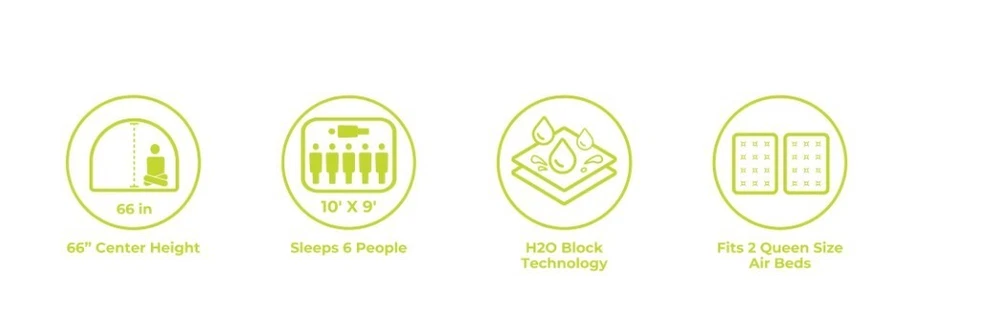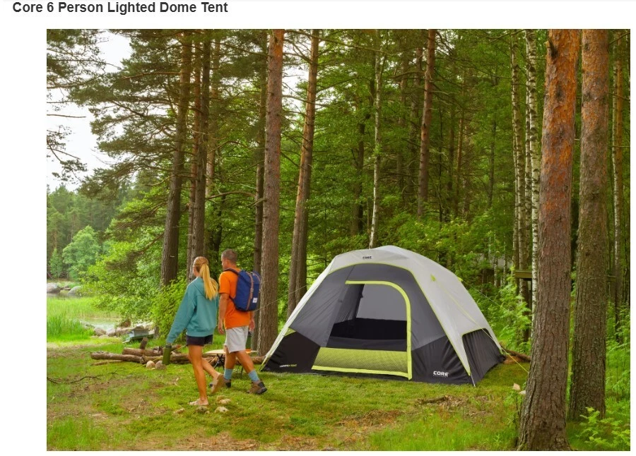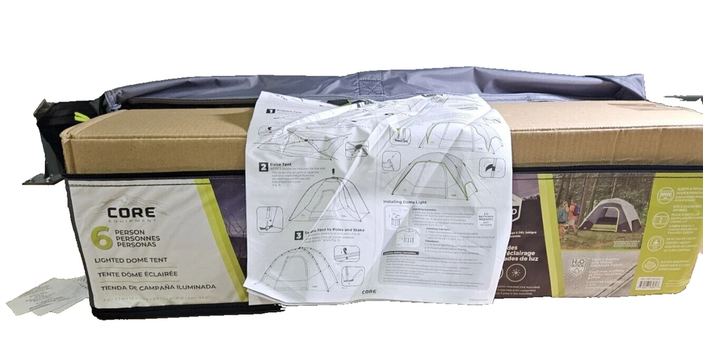 Get ready for an exciting camping adventure with the Core Equipment 6-Person Lighted Dome Tent. This spacious and durable tent is perfect for groups who want to stay comfortable and dry during their outdoor travels. The tent features a waterproof and lightweight design, making it easy to transport and set up. With a capacity of 6 people, this double skin tent is ideal for larger groups who want to stay protected from the elements. The tent's gray color and dome shape add a touch of elegance to your camping gear. The tent also comes with a carrying case, making it easy to transport to your next camping destination. Get ready for a comfortable and fun camping experience with the Core Equipment 6-Person Lighted Dome Tent. Features: Dimensions: 10 ft x 9 ft Sleeps 6 People Built-In LED Lighting Sleeps 6 or Fits 2 Queen Air Mattresses Specifications Brand: CORE Color: Gray Dimensions: W x L x H9 ft. x 10 ft. x 66 in. Model40223 Sleeping Capacity6 Person Tent Material Polyester Type Dome