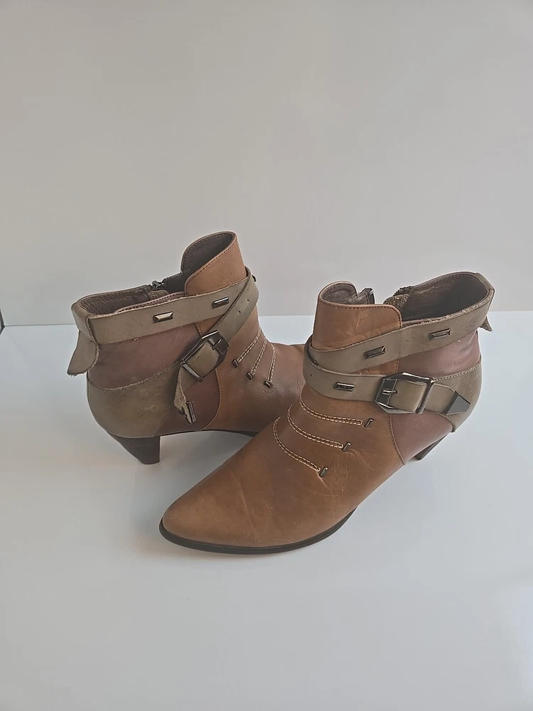 Step up your shoe game with these stunning Corkys ELITE Antelope Booties in a beautiful honey brown color. These ankle boots feature a pointed toe, mid heel with a cone style, and an adjustable strap for a comfortable fit. The booties are perfect for fall and winter and can be dressed up or down for a versatile look. The leather upper material is accented with stylish studded patches, giving the boots a unique and edgy touch. The Corkys ANTELOPE model is a must-have for any fashion-forward woman. Don't miss out on this opportunity to own a high-quality pair of boots from the Corkys product line.