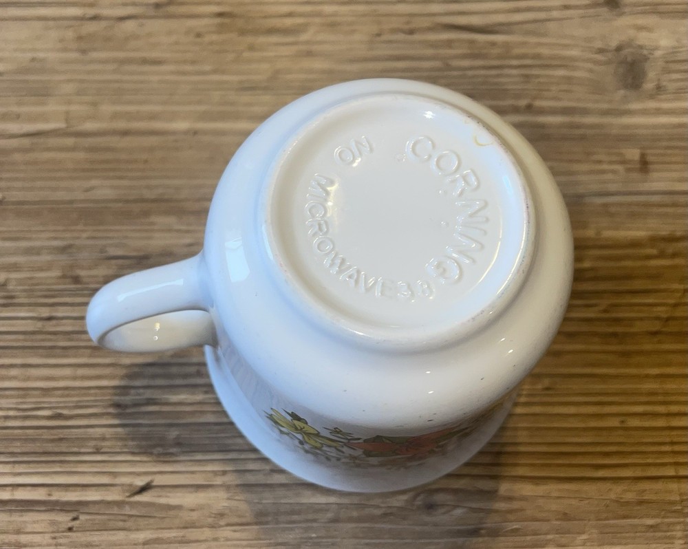 Corning Floral Orange, Green And Yellow Coffee Cup. Used but good condition.