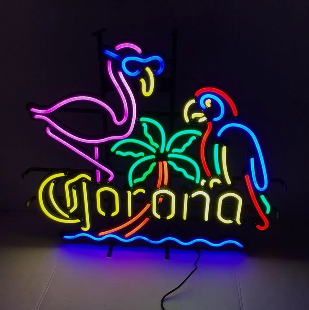 Corona Beer Flamingo Parrot Palm Tree 24"x20" Neon Light Sign Lamp Bar Open Pub