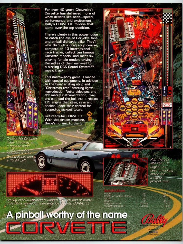 Corvette Pinball Flyer Artwork Sheet Original NOS Bally 1992 Chevrolet Chevy Original paper promo sales flyer. Single page double sided artwork sheet. Flyers are perfect for framing and make great wall art. A flyer is an paper promotional advertising art print sheet made for coin operated amusement arcade games. Also called a circular, brochure, pamphlet, or flier. Size is 8.5" X 11". Plastic protector included with each flyer sold. More pinball, jukebox, slot machine, and vintage arcade game items for sale in our store. SHIPPING Bundle and save by using cart and making single payment. International buyers are responsible for any import fees/taxes. ABOUT US Seller of vintage retro collectibles, pop culture, paper ephemera, new old stock advertising, artwork, original pinball flyers, vinyl records, Mr. Peanut, video arcade flyers, pinball machine parts, game manuals, pinball promo plastics, Mad magazines, antique Halloween and holiday postcards, Christmas items, super hero memorabilia, horror themed art, gifts. MORE RELATED ITEMS IN OUR STORE.