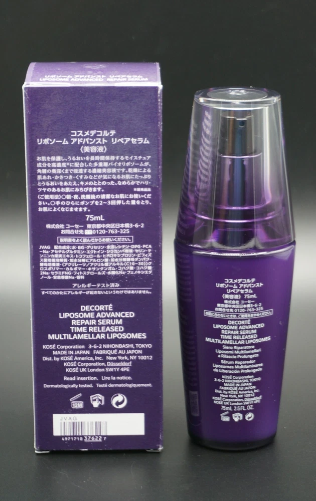 Cosme Decorte Liposome Advanced Repair Serum 2.5oz / 75ml - New. New item! Shelf Pulls were previously available for sale in a retail environment but were never sold. The item is new but the box may show some wear and tear. From Costco Stores. Before sharing feedback, we kindly request the opportunity to address any concerns and make necessary adjustments. Our aim is to ensure everyone's satisfaction and happiness. All products are original, authentic name brands. Thank you for Looking! D3 S&J
