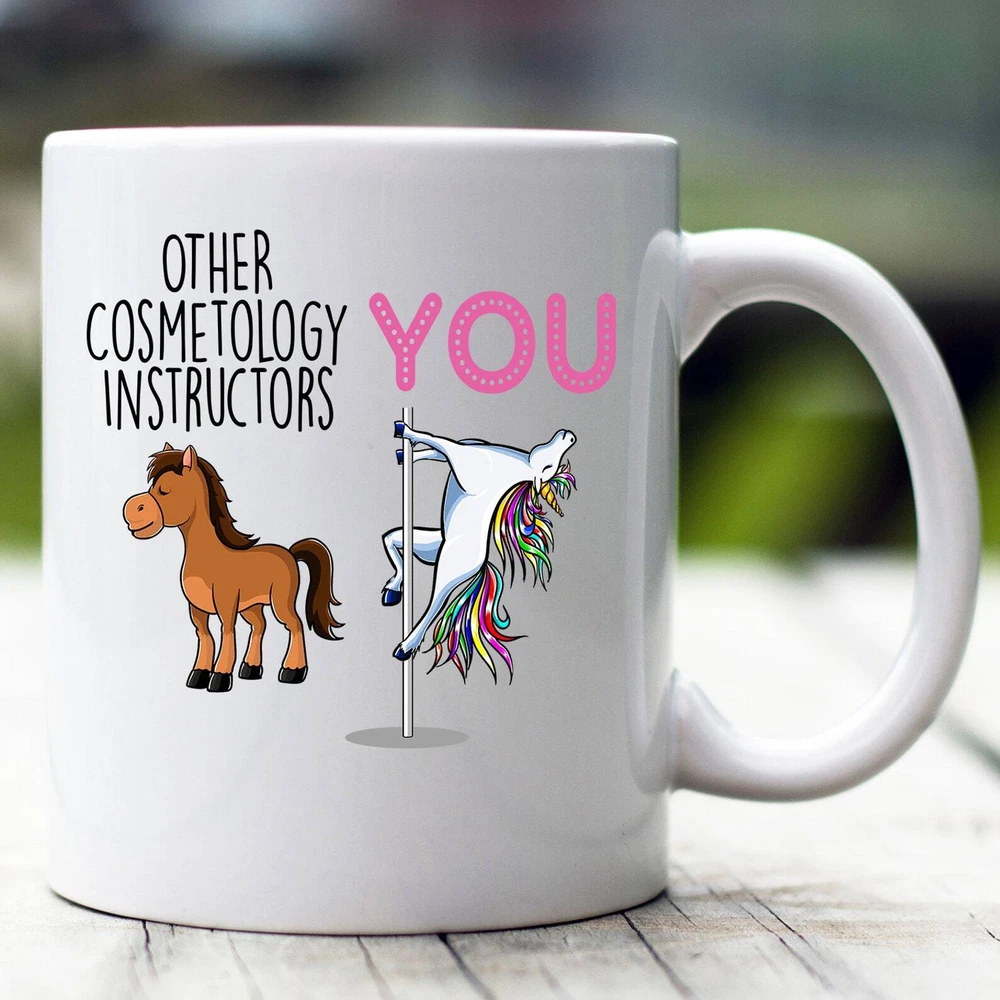 Cosmetology Instructor Gift Cosmetology Instructor Mug Cosmetology Instructor Funny Unicorn Mug Cosmetology Instructor Gag Cosmetology Product Details.. This high quality 11oz. ceramic white mug has a premium hard coat that provides crisp and vibrant color reproduction sure to last for years. Perfect for all hot & cold beverages. The highest quality printing possible is used. It will never fade no matter how many times you wash it. Material: 100% Ceramic. Print both sides. Dishwasher and Microwave Safe. High Gloss + Premium White Finish. Printed in the U.S.A. Personalized & Custom. We support personalized and custom mug to add custom, when placing an order, you can add notes to the "order note" in shipping address section. Also you can contact us directly via message. Shipping Info. Ready to ship in 1 to 2 business days, All products are made-to-order and proudly printed in the United States. Shipped by USPS and DHL, You will receive your order in 5-7 days. Replace & Refund. All products are defective during shipping broken, chipped will be replaced free of charge. You are not satisfied with the product, we will refund 100% money to you. If any other issues arise, please do not hesitate to message, we would be more than happy to assist you.