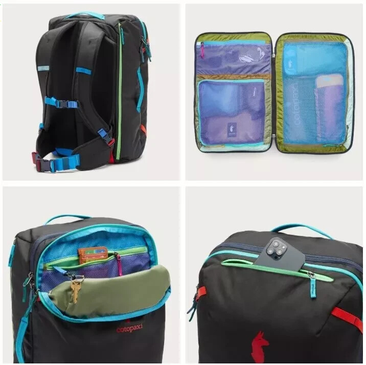 SALE! Cotopaxi Unisex's Allpa Del Dia 35L Travel Pack 100% NEW AUTHENTIC When it comes to daily adventures, the Cotopaxi Allpa Del Dia 35L Travel Pack is up for anything. This spacious carry-on-compatible backpack features a suitcase-style, full-wrap zipper opening for easy packing, with two internal mesh compartments that help us stay organized during our trip. The weight-distributing, low-profile harness system keeps our back and shoulders comfortable as we walk through the airport, and when we get to the hotel, the stowaway waist belt and shoulder straps make for out-of-the-way storage. Our favorite part of this pack might just be the fact that it's made entirely from repurposed nylon and polyester fabric scraps for not only a sustainable design, but also a unique one-of-a-kind colorway. Details Rugged and unique travel pack with convenience of a carry-on Crafted from durable remnant nylon and polyester fabrics Stowaway shoulder straps and hip belt provide load support Suitcase-style interior for optimal organization Padded laptop and tablet sleeve protects your tech Del Dia collection is full of 100% unique products made from remnant fabrics; colors will differ from product image Item #CTXB0IE