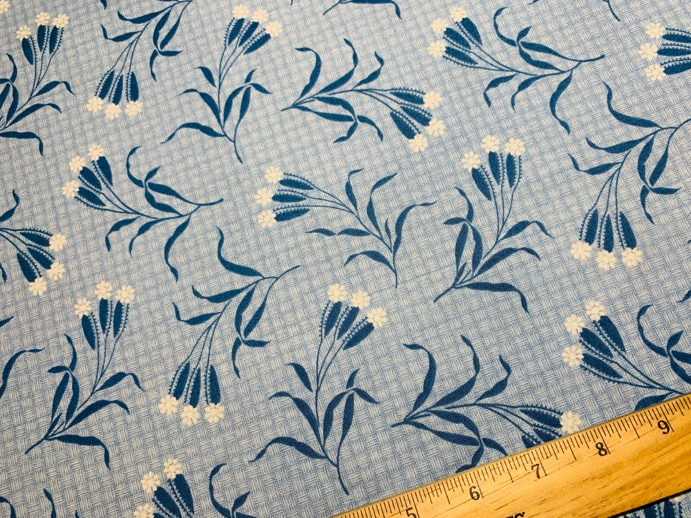 1 fat quarter yard of a BEAUTIFUL cotton 1800s repro fabric Lancaster blue floral print by Edyta Star of Laundry basket Quilts for Andover Fabrics! Long OOP! Only 1 available! Better than the photo! Great for quilting, decorating or clothing! Perfect for quilting or clothing! Selvage is marked as photo'd. 100% EXCELLENT A++ quilt shop quality cotton in unused condition. Has a wonderful smooth feel! Very crisp! No stains, tears or holes. Original sizing, never laundered. Buyer pays shipping. Shipping combined for multiple wins. Add items to your cart and request a total (if this option is available in your cart) or pay and I will refund any shipping charge.