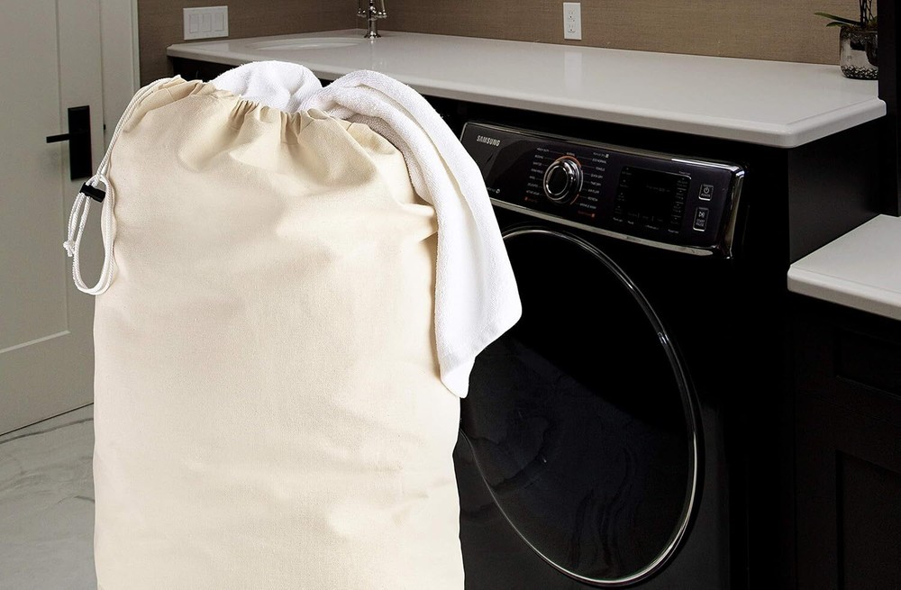 STRONG AND DURABLE: This well made sturdy canvas laundry bag is manufactured from 100% heavy duty cotton fabric; the best quality to ensure heavy usage without needing replacement. MULTIPURPOSE: Handy as a dirty clothes bag, for laundry basket liners, sleeping bag storage sacks for camping, students college dorm laundry bags, or for storing linen or household essentials. SECURE CLOSURE: The simple draw string locking closure on this heavy duty laundry bag ensures that all your items remain safe and secure inside. WASHABLE: This natural cotton bag is extra easy to care for, just toss it into the machine to wash clean. It's preshrunk to ensure only minimal shrinking, so you can dry it too. BIG SIZE: This extra large laundry bag is specially designed to handle a full load of laundry and to act as a suitable liner or insert for hampers and baskets or as a duffel bag.