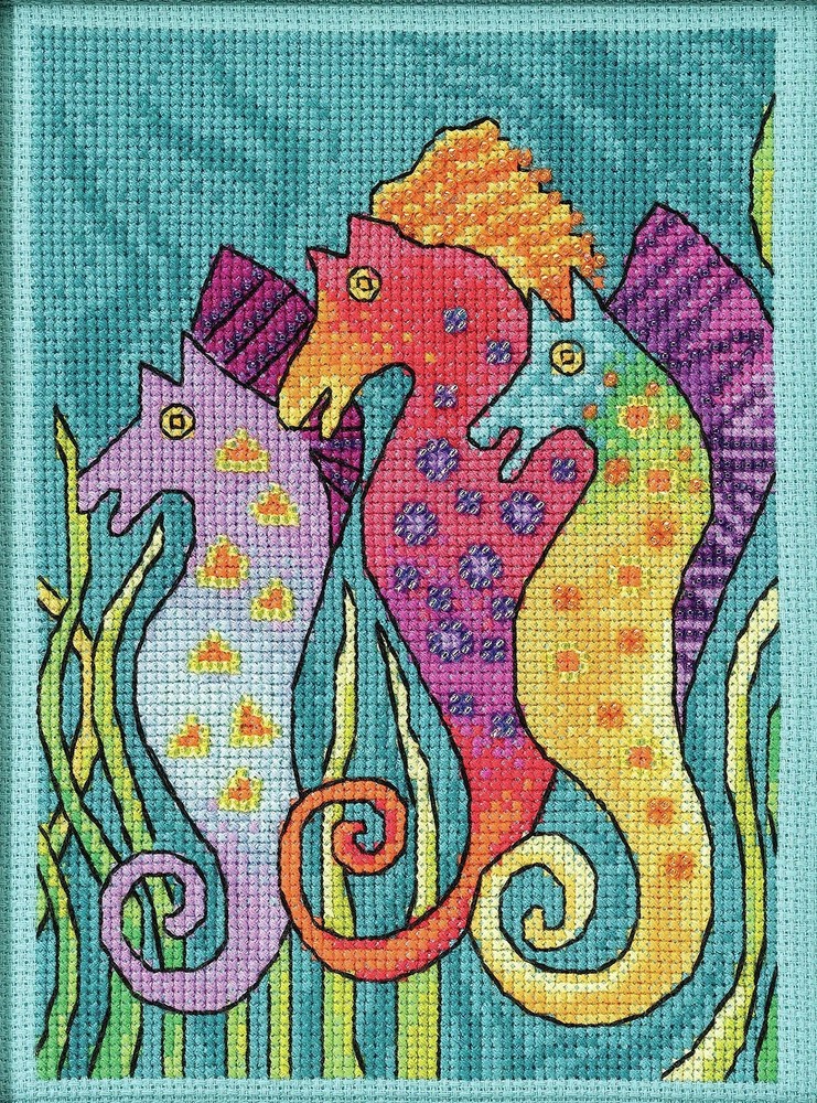 Counted Cross Stitch Kit with Colorful Sea Horses Design