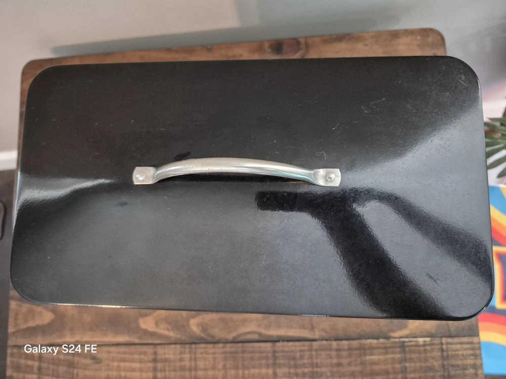 In very good condition Has some wear on the top edge of the box. Cannot see it with the lid on. No other scratches or chips noted