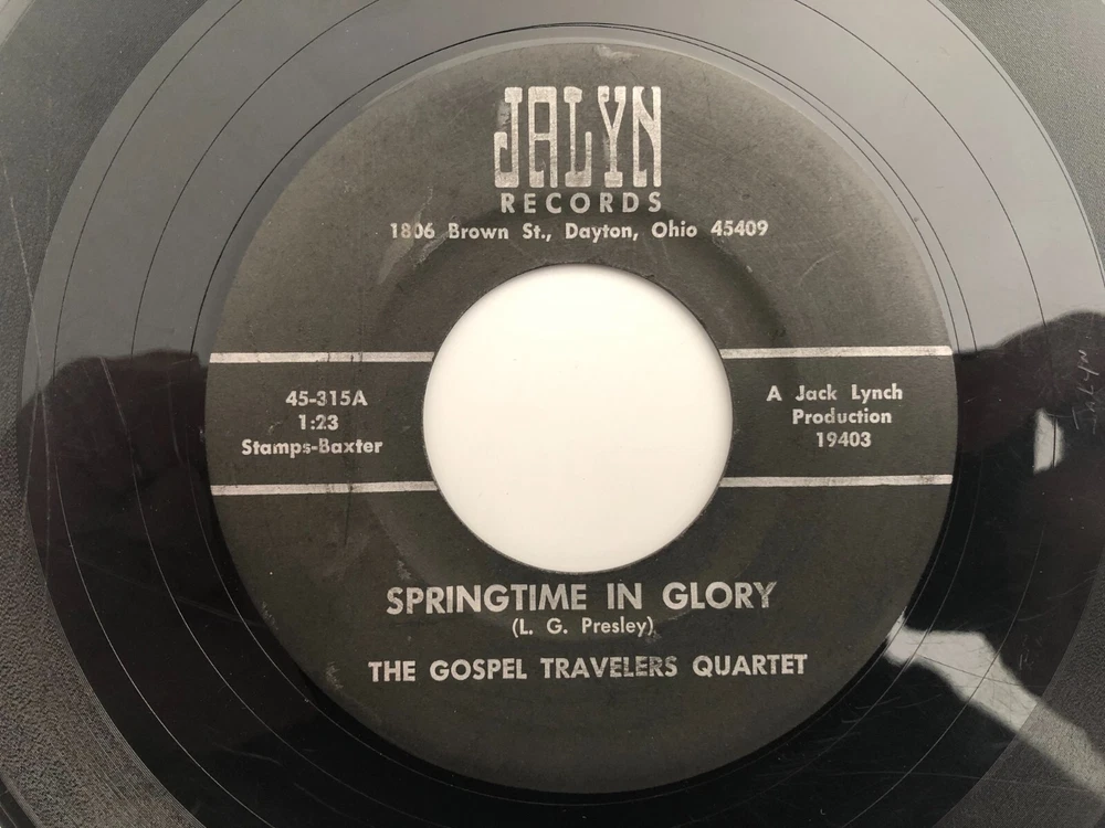artist The Gospel Travelers Quartet label Jalyn 315 title Springtime In Glory / Where No One Stands Alone record condition Poor notes 1967 RITE pressing from Dayton, Ohio in filler condition. Grading scale: NM / VG++ / VG+ / VG / VG- / G+ / Poor I combine S&H on multiple orders and have no problem starting a stack if you wish to combine S&H for future orders. Please view my other listings for more desirable 45's, 78's and LP's in the country, bluegrass, gospel, rockabilly, rock & roll, teen, instrumental genres. Powered by e C o m m e r c e Player .com