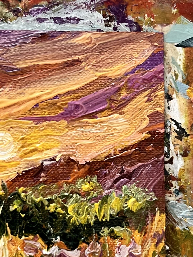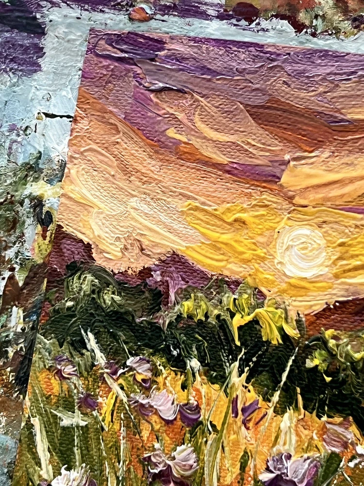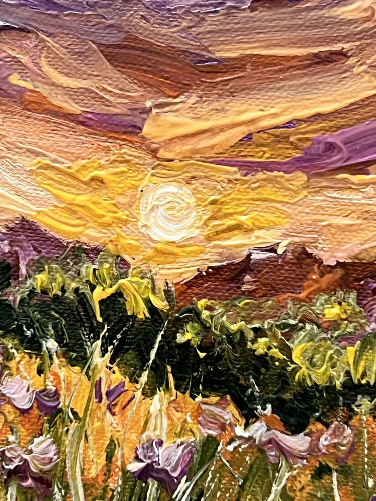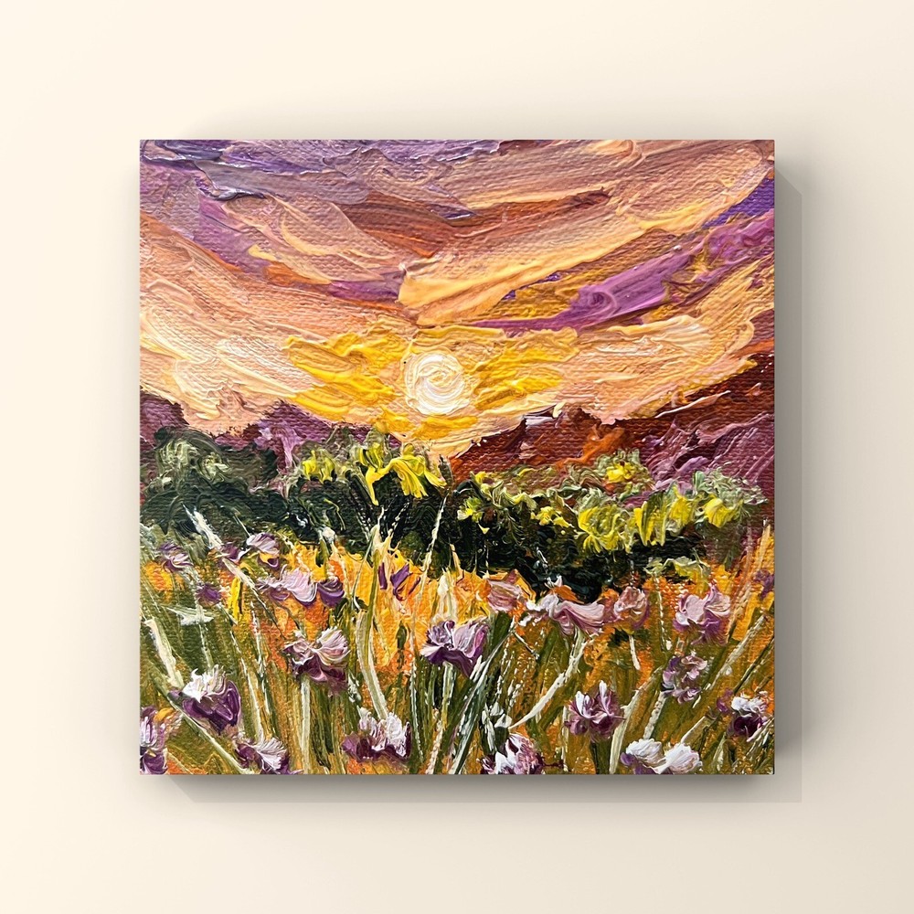 🌿 This original oil painting captures the essence of a summer sunset on a meadow. The impressionist style is evident in the light, free strokes used to create a warm and inviting scene. Perfect for adding a touch of rural aesthetics to your home or country cottage decor, this painting evokes memories of cozy summer evenings spent in the countryside. Bring a piece of nature into your home with this beautiful and unique piece of art. 🌷 Original author's oil painting on canvas pad / unstretched canvas. Need a decorative frame. 🌿 Size: 10x10 cm / 4x4 inches . 🌷 Signed from the back. Made in Ukraine , 2023. 🌿 Materials: professional oil paints, canvas pad ,. Unframed . Need a decorative frame. 🌷 I use exclusively professional and safe high quality paints for artists in my artworks. 🌿 Each parcel is securely and beautifully packed, so you don't have to worry about its safety. 🌷 Please note that paintings are sent without frames. 🌿 Please note that oil paints take a long time to dry, so for new paintings, the delivery period may increase by 1-2 weeks. ❤️❤️❤️❤️❤️❤️ Dear friends ❤️ I wanted to take a moment to express my deep gratitude for your unwavering support of my art and the importance of supporting Ukrainian artists during these difficult times. Your generosity has allowed me and many other talented individuals to continue pursuing our passion and providing for our families. In times of conflict, it can be easy to overlook the importance of art and culture. However, I believe that it is precisely in these moments that art becomes even more important. It provides a source of hope, inspiration, and beauty that can help us all to endure and persevere. Your contributions have not only helped me personally, but they have also helped to showcase the beauty and creativity of Ukrainian art to the world. Through your support, we are able to preserve and promote the rich cultural heritage of Ukraine, while also providing a source of hope and inspiration for our fellow citizens. I am deeply honored to be a part of such a wonderful community of supporters, and I am grateful for each and every one of you. Thank you for believing in me and my art, and for recognizing the importance of supporting Ukrainian artists during these challenging times. With heartfelt appreciation, Kate ❤️