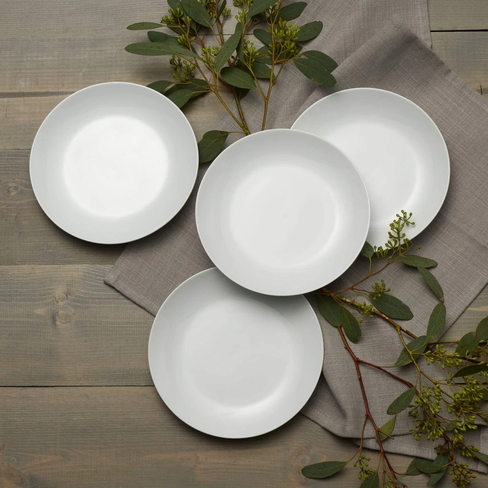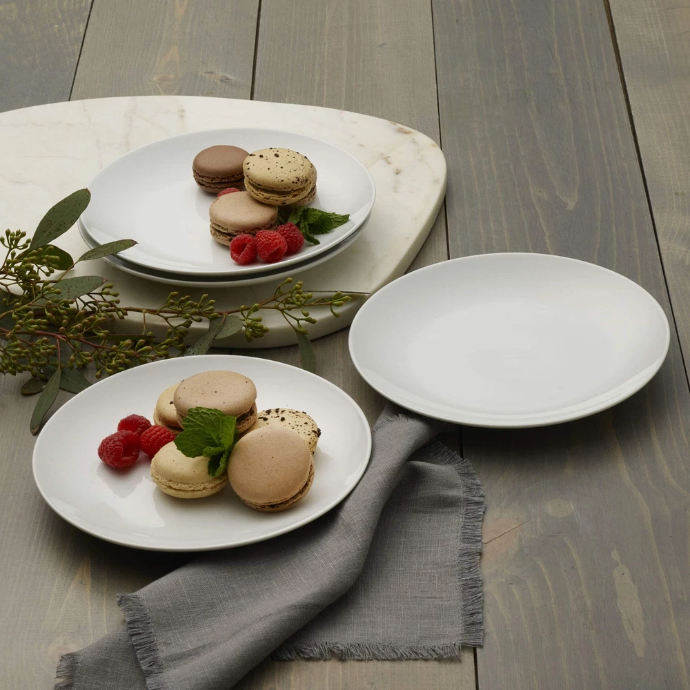 This sophisticated Set of 4 Coupe Salad Plates by Fitz and Floyd adds understated style to any dining occasion. Contemporary coupe shapes in sleek white porcelain give your tabletop a fresh, elegant look. Perfect for everyday use or formal entertaining, these salad plates will match any home decor. Set of 4 salad plates, each measuring 7-3/4 inches in diameter by 7/8-inches high. Dishwasher, microwave and oven safe up to 450 degrees. ELEGANT AND UNDERSTATED: white dinnerware is perfect for everyday use, as well as more formal occasions MODERN DESIGN: salad plates feature a distinctly contemporary coupe shape BEAUTIFULLY CRAFTED: made of porcelain SET OF 4: each salad plate measures 7-3/4 inches in diameter by 7/8-inches high EASY CARE AND REHEATING: dishwasher, microwave and oven safe up to 450 degrees