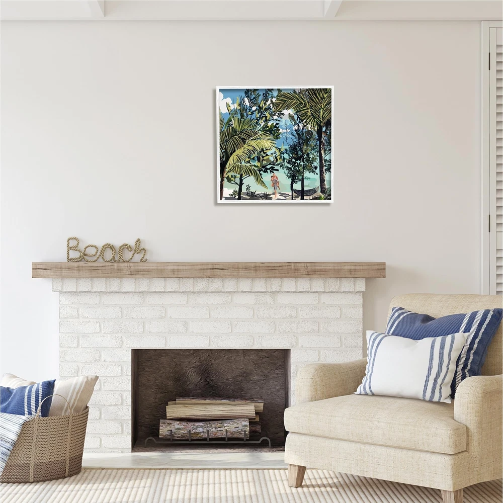 Add dimension to any room with our textured Framed Giclee Artwork. Our framed artwork is securely mounted into a 1.5-inch thick wood grain frame and ready to hang. Frames are available in three alluring styles: black, gray farmhouse and white. In addition, you should check out our oversized options if you want a statement piece. Wall Art is made in the USA. Framed Giclee Sizes Include Standard: 12 x 1.5 x 12 Large: 17 x 1.5 x 17 Oversized: 24 x 1.5 x 24 Wall Art is Ready to Hang with Hardware Free Hanging. No installation required. For Easy Set Up Lean or Layer Artwork on Shelf or Against Wall. Our giclée prints are carefully mounted on a durable MDF backing, and then perfectly finished in a 1.5 inch thick woodgrain frame. Mounted frame colors include black, gray farmhouse and white. Made In USA. Artwork Relates To: Person, Tropical, Beach, Coast, Shoreline, Vacation, Palm Tree, Summer, Couple Design by Amelia Noyes