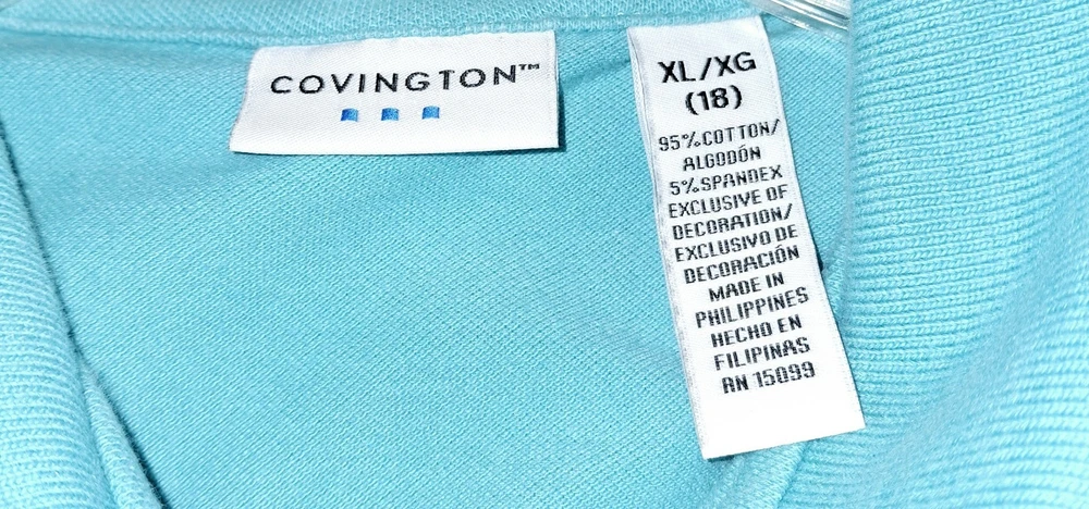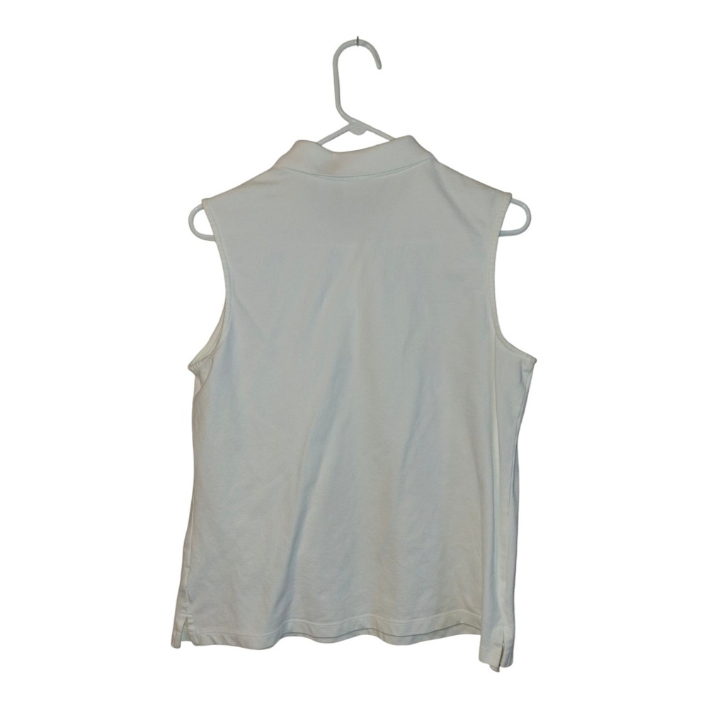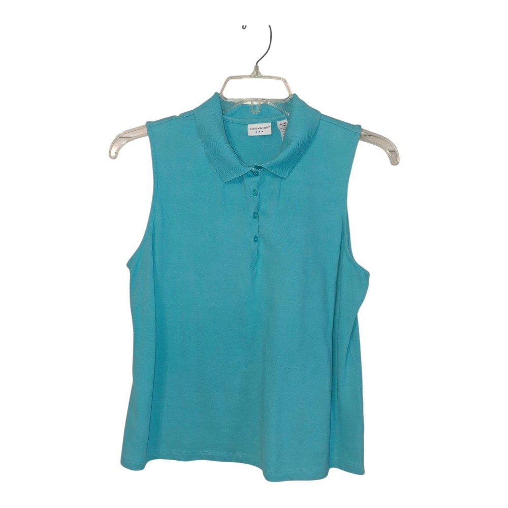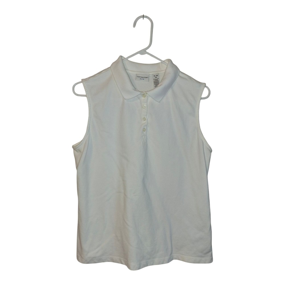 Covington White and Aqua Sleeveless Polo Shirts Set of 2 Size XL 18 Contains 2 tops. One white and one aqua. Tops are in great condition. No stains, tears, or fading. Both shirts are size XL (18). 4 button. 2 inch hem slit. 95% cotton. 5% spandex. Machine wash. Tumble dry. Measurements: Armpit to Armpit 20 Bottom Hem Width 22" Length 23" Hem Slit 2" Measurements taken flat and are approximate.