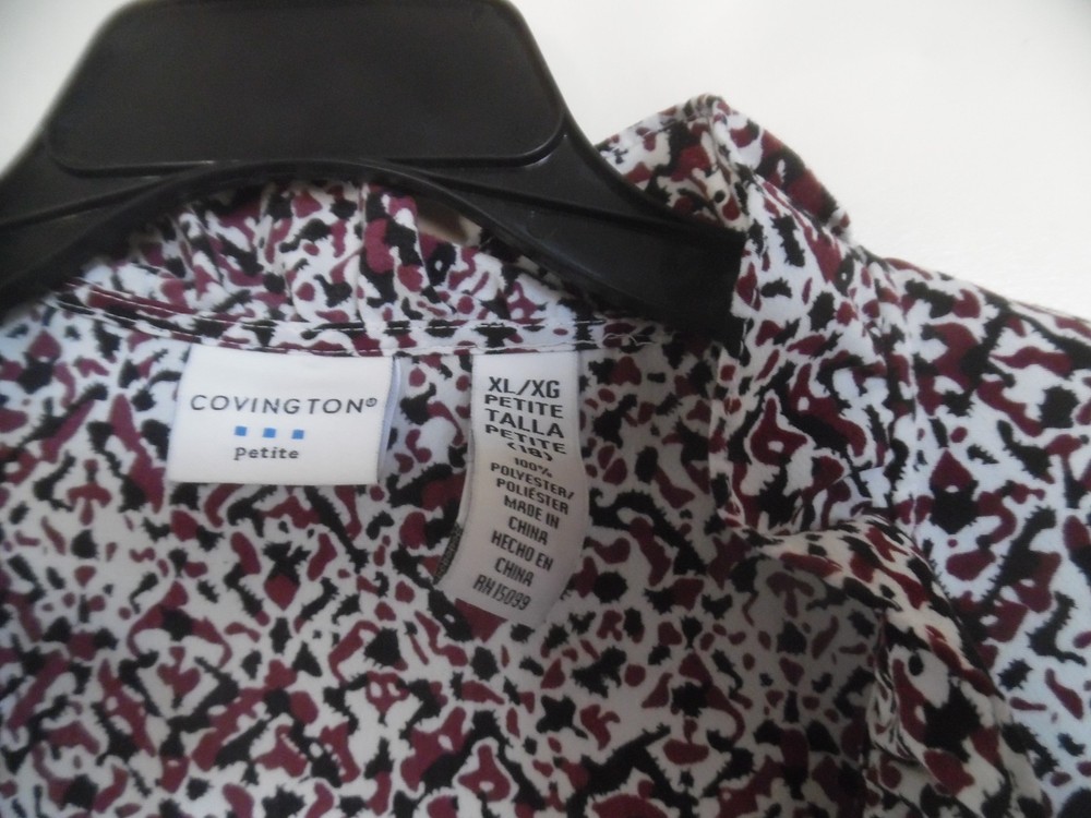 Covington Womens Top Blouse Size XLP Ruffle Button Up Long Sleeve XLP Career Armpit-armpit: 23" Sleeve Length 23" Length: 24" AT Combined Shipment: USA : Highest item shipping cost + $3.00. for each subsequent item.Or, you can purchase as many items as you choose and pay the flat rate of $18.75 for your Priority Mail Large Flat Rate Box which covers your entire order. Please read the disclaimer below. INTERNATIONAL SHIPMENTS: Highest item shipping cost + $5. for each subsequent item. Please read the disclaimer below. DISCLAIMER on Shipping Costs: Our intention is to keep our shipping costs as low as possible. However, depending on the item purchased (weight) and the destination, shipping rates can vary; especially 30 Day?s No Questions Asked Returns Policy: Your satisfaction is very important to us. We have a 30 days NO QUESTIONS ASKED returns policy. The item must be returned in the condition in which it was purchased. If there are labels/tags they should not be removed. If they are, the item will be sent back to you. ANY SHIPPING COSTS WILL NOT BE REFUNDED. BOTH WAYS, receiving and any returns. Please contact us for the return shipping address and authorization. ALL COMMUNICATIONS MUST BE IN WRITING & TAKE PLACE THROUGH THE EBAY SITE ONLY. No private direct email correspondence. A customer care rep. will respond to you within 24 hrs (Mon-Fri). Once we have received the merchandise and inspected it, please allow 72 hours for a refund to be issued. NO See my other listings for more great items! We accept PAYPAL. Also we have a virtual terminal with PayPal through which we can accept Visa, MasterCard, Amex, and Discover. If you do not have a PayPal account, it takes virtually minutes to open International shipments: PLEASE DO NOT PAY until we determine your shipping costs. Most of our items also have an International Flat-Rate. Although, if due to the destination or the weight we are unable to honor the rate mentioned in the item?s listing, we will cancel your order and leave you positive feedback. Usually we use the US Postal Service. The best international rate for an international shipment is First Class (up to 4 lbs.)If your items exceed 4 lbs. we may pack them into two separate packages (and notify you of this).You still are eligible to take advantage of the combined shipping rates, even if we have packed them into two separate packages. The fees for packaging, shipping, insurance, Customs Duty Charges on international shipments are all the responsibility of the Buyer and are not included in the purchase price. If the item(s) are gifts, we could indicate ?GIFT? on the customs form so you would avoid paying more on duty.