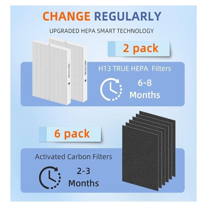 COMPATIBLE AIR PURIFIER MODELS: Pulluty AP-1512HH HEPA Filter Widely compatible with Coway Airmega AP-1512HH, AP-1512HHS and 200M Air Purifiers, replaces part# 3304899. 【H13 TRUE HEPA FILTER】:The high efficiency AP-1512HH HEPA air filters capture 99.97% of airborne particles and particles as small as 0.1 microns. The activated carbon prefilter absorbs smoke, cooking fumes and noxious odors from harmful volatile organic compounds. 【ACTIVATED CARBON PRE-FILTER】:The activated carbon pre-filter of filter collects dust,pet hair,and other large particles, while extending the life of the HEPA filter.Treated carbon take in volatile organic compounds from the air and reduces odors from smoking, cooking and pets. 【VALUE PACKAGS】:Package includes 2 x H13 True HEPA Filters and 6 x Activated Carbon Filters. For the best performance, it is recommended to replace the HEPA filter every 6-8 months, replace the activated carbon pre-filter every 2-3 months for the best performance (depending on your usage and environment), and obtain higher filtration performance for long-term use.