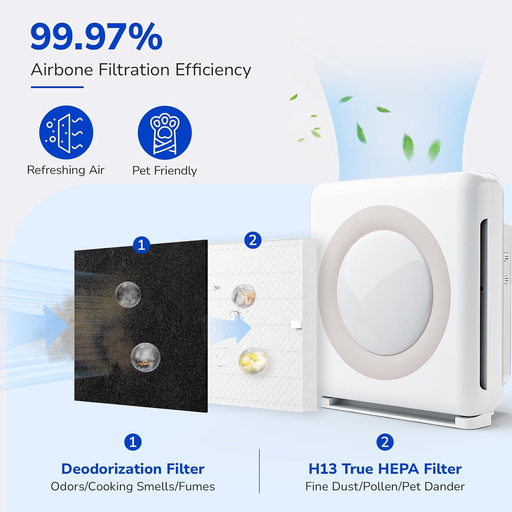 Model Compatibility: Compatible with Coway AP-1512HH, AP-1512HH-FP, AP-1518R, AP-1519P and Airmega 200M mighty air purifier, replacing filter model 3304899. All manufacturers' names and part numbers are used for compatibility information only. Daily Air Clean Solution: Tired of dust, pollen, and pet dander making life uncomfortable? This filter is your solution, helping you create a fresher, cleaner home. Say goodbye to sneezing, itchy eyes, and coughs—all while enjoying better sleep and easier breathing. High-Efficiency HEPA Filter: Made from ultra-dense PET material, this filter grabs 30% more dust than regular PP filters. It traps 99.97% of particles as tiny as 0.3 microns—dust, pollen, smoke, pet dander, you name it—keeping your air cleaner and healthier for longer. Strong Carbon Filter: Eliminate unwanted odors with our improved carbon filter. Its finely porous carbon particles trap smoke, cooking smells, and pet odors better than traditional large carbon filters. Your home will smell fresh and inviting all day! Great Value for Cleaner Air: Get 2 HEPA and 4 carbon filters in one pack, lasting up to two years. Affordable, efficient, and designed to save you bills while keeping your air clean. Less hassle, less maintenance, and peace of mind knowing you're breathing healthier air every day. Product Description Smells Purification Pet Dander Filtration Pollen Removal Exhaust Filtration