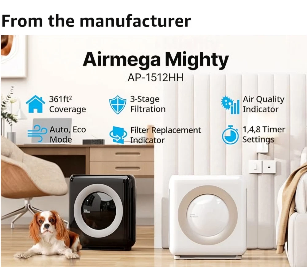 ENJOY CLEAN AND REFRESHING AIR IN YOUR HOME ALL THE SEASONS THROUGH THE YEAR. THE COWAY AIRMEGA TRUE HEPA AIR PURIFIER EFFECTIVELY REMOVES IMPURITIES FROM YOUR HOMES AIR. IT CAN TREAT ROOMS UP TO 361 SQUARE FEET IN 12.5 MINUTES, 874 SQUARE FEET IN 30 MINUTES, AND 1748 SQUARE FEET IN 60 MINUTES WITH RELIABLE 4-STAGE FILTRATION INCLUDING A TRUE HEPA FILTER. YOU CAN EASILY OPERATE THIS AIR PURIFIER WITH ITS INTUITIVE TOUCH CONTROLS. IT'S PROGRAMMED WITH A NUMBER OF SMART FEATURES INCLUDING AN AIR QUALITY INDICATOR, ECO-MODE, AND A TIMER. LOOKING OUT FOR MOTHER EARTH AND YOUR ENERGY BILL, THIS AIR PURIFIER IS ENERGY STAR RATED. ● RELIABLE FILTRATION : THIS AIR PURIFIER HAS 4-STAGE FILTRATION INCLUDING A PRE-FILTER, ODOR FILTER, HEPA FILTER, AND IONIZER...... ● EASY OPERATION : YOU CAN EASILY OPERATE THIS AIR PURIFIER WITH ITS INTUITIVE TOUCH CONTROLS..... ● SMART FEATURES : IT'S PROGRAMMED WITH A NUMBER OF SMART FEATURES INCLUDING AN AIR QUALITY INDICATOR, ECO-MODE, AND A TIMER..... ● THIS PURIFIER IS ENERGY STAR RATED TO OPERATE FOR YEARS TO COME IN YOUR HOME...... ■ BRAND NEW SEALED BOX- BLACK-I ONLY OPENED THE BOX FOR PICTURES..... ● RETAIL PRICE $227.26