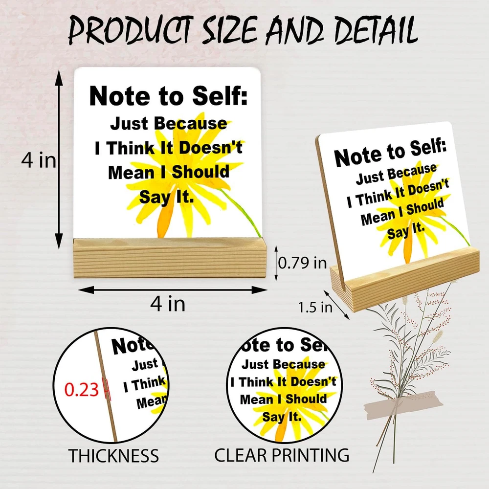 Store New Arrivals Add to Favorite View Feedback Contact Coworker Gifts Note to Self - Sarcastic Funny School Home Office Desk Decor Note to Self Wood Sign Desk Decorations for Women Coworker Teacher - Office Desk Accessories Description Item model number mutiaodizuo289 Style Note to Self Color note to self Country of Origin China Item Weight 1.6 ounces Package Dimensions 4 x 4 x 0.78 inches 『SIZE』 10 x 10 cm/4 x 4 inch square plank and 10 x 4 x 2 cm/4 x 1.5 x 0.79 inch base. It can be inspiring and beautify your environment 『MATERIAL』The material of the wooden sign is made of high-quality wood, polished and printed.It's high quality decoration. 『OCCASIONS』The wooden plaque sign is an delicate ornament for your home, office, bedroom, living room, kitchen, school, dormitory study, bathroom, table, shelf, nightstand and other places. 『EASY ASSEMBLY』Wood plaques are easy to assemble, you just need to push the wooden signs into the slots in the base and you can place them where you want to decorate. 『SPECIAL GIFT』It's very meaningful and warm. Great choice for birthday gifts, office gifts, inspirational gifts, new job gifts for women, men, family, friends, colleagues, employees and more. They are cute and little with meaningful words and sayings. They make a great gift because they can be displayed just about anywhere! Perfect for the desk, shelf or window ledgel! ABOUT US We offer the best prices around on high quality products. Our E-store includes media such as books, movies, music and games while offering electronics, toys, sporting apparel, clothing, tools, general home, garden items and more. SHIPPING We are always working hard to ensure your package arrives as soon as possible. Please understand that some factors like weather, high postal traffic, and the performance of shipping companies are outside of our control. We offer free shipping to the lower 48 states and ship within 2 business days of payment, usually sooner. We do not accept P.O. Boxes. Please provide a physical address. RETURNS We offer a 30-Day Return Policy on items which you are not completely satisfied with. You have the option for a full-refund or an exchange of the item. No returns are available on items shipped outside of the USA. PAYMENT We accept PayPal. CONTACT US This page content is yet to come Please ad us to your favorite seller and visit again later Thank You CUSTOMER SATISFACTION We try our very best to make sure every customer is completely satisfied. If there's a problem, message us! We're happy to help.