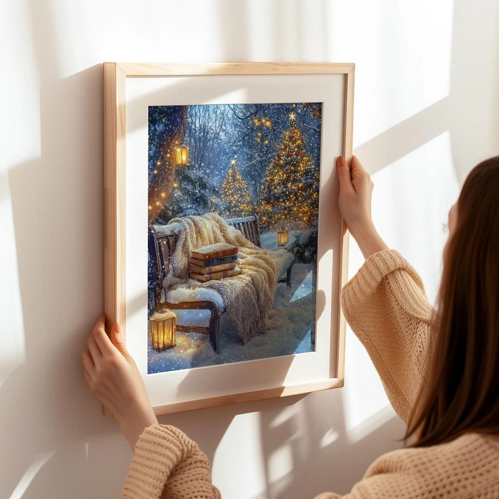 Cozy Christmas Book Lover Art Print Winter Reading Nook Wall Decor Bookish Christmas Printable Holiday Book Art Material: Premium luster photo paper Print type: Inkjet printing One side printed + The finish provides the highest possible resolution and color saturation + Lasts up to 200 years in color and 400 years in black-and-white + Printed on high-quality resin-coated photo base paper medium + Posters can be hung with double-sided tape, tacks, or framed + Hand washing with a gentle cry cloth is recommended for extended durability I will hand select the best choice of paper for your chosen design to ensure top quality results for a beautiful, bright and luxurious print. All prints are sealed in cellophane slips for protection during transportation, and are shipped in a protective cardboard envelope.