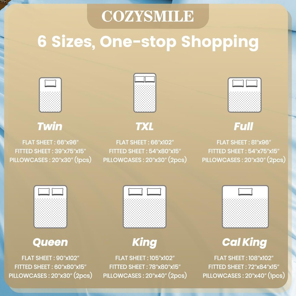 CozySmile Breathable Ultra Soft Full Sheet Set - Hotel Luxury 4 Piece Deep Pocket Sheets for Full Size Bed, Fits 16" Mattress, Easy Care Wrinkle Free Bedding Sheet and Pillowcase Set, Sky Blue Color: Sky BlueFeatures: EXCEPTIONAL SOFTNESS - CozySmile offers a luxury bedding sheets and pillowcases set crafted from hydro-brushed high-quality microfiber, indulge in the unparalleled smoothness and softness that envelops you day and night. 16" DEEP POCKET EASY FIT - All-around stretchable elastic fitted sheet and with generous dimensions, our bed sheets were designed to securely fit all mattress depths from 6 to 16 inches deep. PERFECT GIFT IDEA - CozySmile bedding sheet sets are the ideal choice for a thoughtful gift. With their wrinkle and pill-resistant properties, they ensure a neat and clean appearance. The breathable design keeps you cool and well-rested throughout the night. SAFETY & DURABILITY - Our bed sheets have passed rigorous OEKO-TEX Standard 100 testing, ensuring they are free from harmful materials for your peace of mind, they are also expertly crafted for long-lasting durability with 1000 thread count. VERSATILE SIZES & COLORS - Experience the perfect fit with our bedding sheet set, available in 6 sizes (Twin/Twin XL/Full/Queen/King/Cal King) and 9 elegant colors. Each set includes a fitted sheet, flat sheet, and 2 pillowcases (Twin size includes 1 pillowcase). Package Dimensions: 10.0 x 7.4 x 4.3 inches CozySmile Breathable Ultra Soft Full Sheet Set - Hotel Luxury 4 Piece Deep Pocket Sheets for Full Size Bed, Fits 16" Mattress, Easy Care Wrinkle Free Bedding Sheet and Pillowcase Set, Sky Blue Color: Sky Blue Features: EXCEPTIONAL SOFTNESS - CozySmile offers a luxury bedding sheets and pillowcases set crafted from hydro-brushed high-quality microfiber, indulge in the unparalleled smoothness and softness that envelops you day and night. 16" DEEP POCKET EASY FIT - All-around stretchable elastic fitted sheet and with generous dimensions, our bed sheets were designed to securely fit all mattress depths from 6 to 16 inches deep. PERFECT GIFT IDEA - CozySmile bedding sheet sets are the ideal choice for a thoughtful gift. With their wrinkle and pill-resistant properties, they ensure a neat and clean appearance. The breathable design keeps you cool and well-rested throughout the night. SAFETY & DURABILITY - Our bed sheets have passed rigorous OEKO-TEX Standard 100 testing, ensuring they are free from harmful materials for your peace of mind, they are also expertly crafted for long-lasting durability with 1000 thread count. VERSATILE SIZES & COLORS - Experience the perfect fit with our bedding sheet set, available in 6 sizes (Twin/Twin XL/Full/Queen/King/Cal King) and 9 elegant colors. Each set includes a fitted sheet, flat sheet, and 2 pillowcases (Twin size includes 1 pillowcase). Package Dimensions: 10.0 x 7.4 x 4.3 inches × × × × × × × × × × Buy now and save! Tell a friend Watch now Postage info Click the Postage tab above the listing description for more info Click the Postage tab above the listing description for more info! Additional delivery notes PICK UP OPTION Sorry, our items are NOT available for pick-up. PAYING VIA PAYPAL We accept PayPal on our all our items so you can shop with confidence. Simple choose the PayPal option when proceeding through the checkout. Additional Information No additional information at this time Ask seller a question You might also like ELEFOCUS Hidden Cameras,WiFi Wireless Camera,Nanny Cam,Spy Camera,Mini Camera,Sm Mini Body Camera Video Recorder, 1080P Small Portable Wearable Hidden Cameras wi Vancle 4 Pack Bands for Fitbit Inspire 2 Bands/Fitbit Inspire HR for Women Men, 2 Pack-Earbuds for iPhone Headphones Wired with Earphones [MFi Certified](Built- Contact To contact our Customer Service Team, simply click the button here and our Customer Service team will be happy to assist. Ask seller a question © My Store Postage Click the Postage tab above the listing description for more info Payment Accepted Payment Methods PayPal Returns Returns are accepted Items must be returned within 30 days of the auction ending Buyer will pay for return shipping. eBay integration by