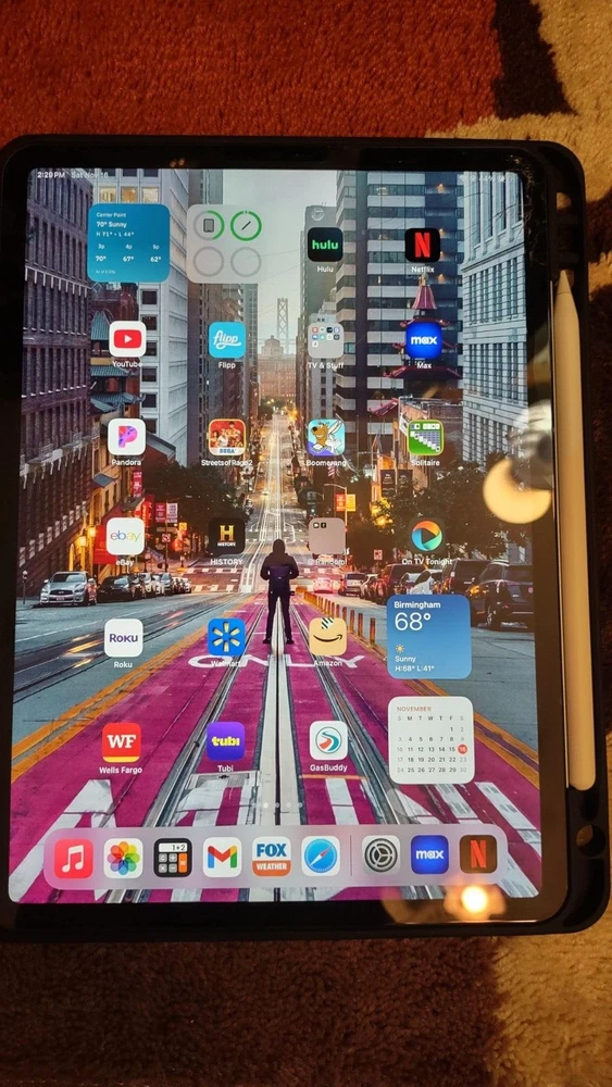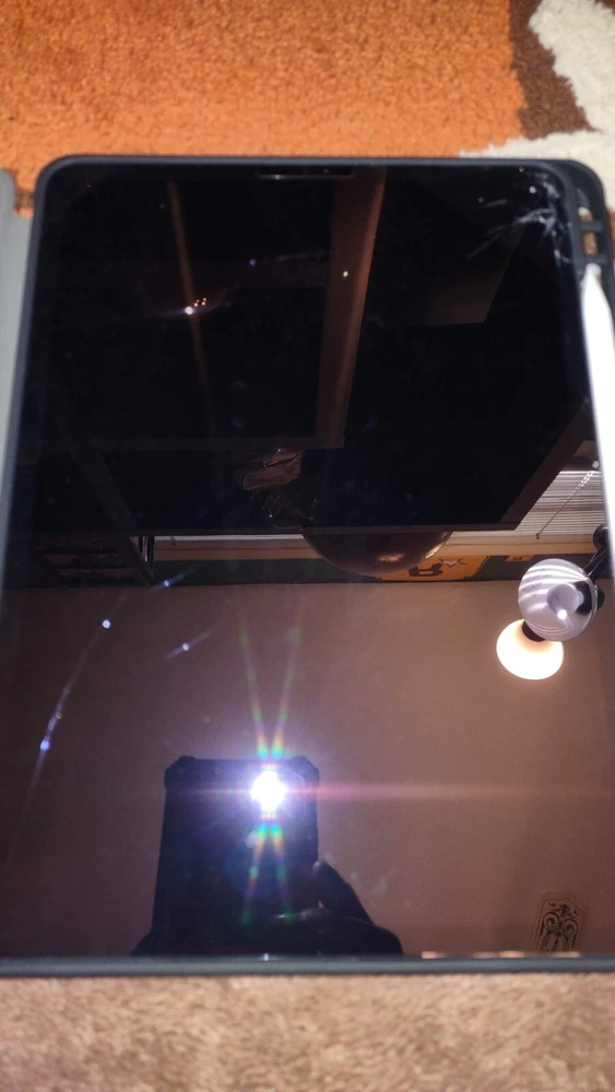 The iPad works as should (audio/wi-fi/bluetooth/front and rear camera/touch screen operation/apple pencil gliding); but the screen is cracked. The rest of the iPad's body is imperfection-free. You will receive the 4th gen iPad pro, 2nd gen Apple pencil, the power/sync cord, 20w power adapter, and the 'composition book' ipad case. A glass screen protector has been installed over the cracked screen. Battery life is great. Apple 2nd Generation pencil works as should;and the battery life is also, great. No box is included, sorry.