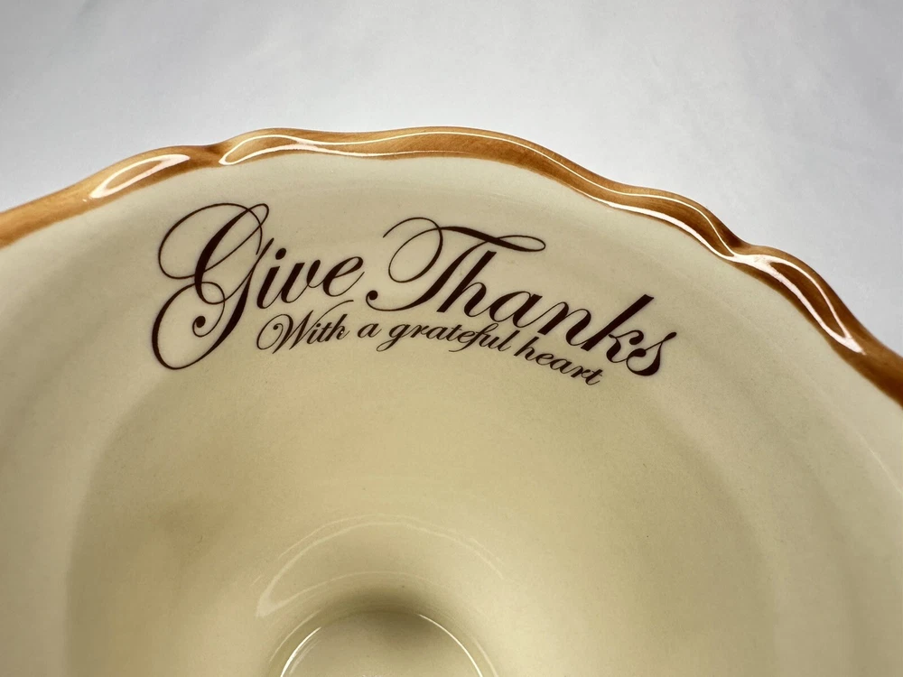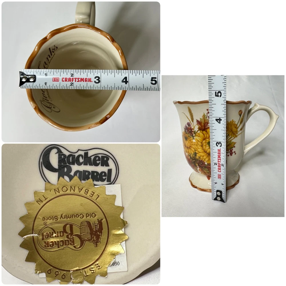 Cracker Barrel Family Blessings Give Thanks with a Grateful Heart Footed Ceramic Mug. Approximately 4 5/8” tall and 4” wide across top rim. Mug is in excellent pre-owned condition.