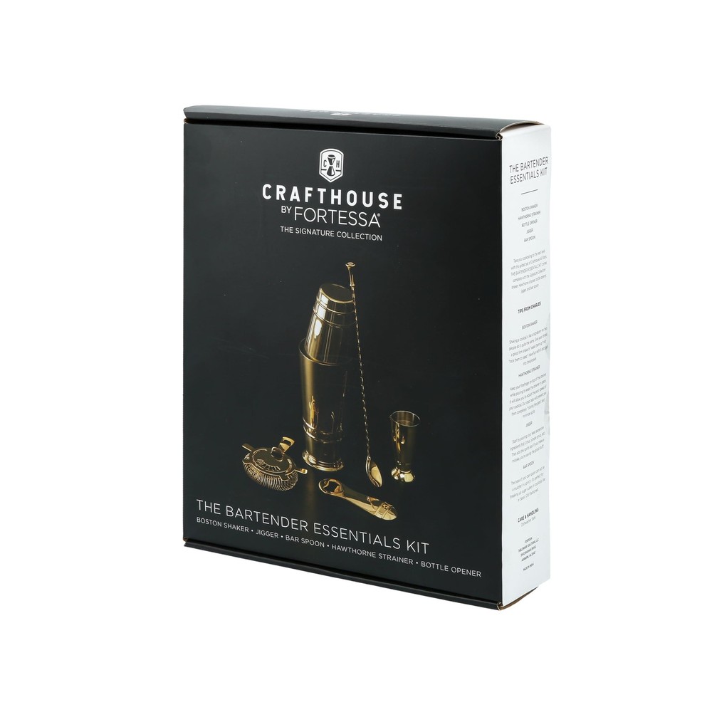 PVD STAINLESS STEEL - Titan PVD provides distinctive and durable finishes on a variety of patterns, available in an array of options including: brushed gold, brushed champagne, and brushed black. DISHWASHER SAFE - Cleaning is a breeze. Safe for both Commercial and Residential Dishwashers to keep these looking new and ready for the next experience. SET INCLUDES - (1) Boston Shaker; (1) Hawthorne Strainer; (1) Jigger; (1) Bar Spoon; (1) Bottle Opener CRAFTHOUSE BY - A comprehensive barware collection designed by World Champion bartender Charles Joly. Inspired by classic barware and updated with modern, real world functionality. Signature Collection Collection - Check our the rest of this collection and more of our Glassware, Dinnerware, Flatware and Barware Products!