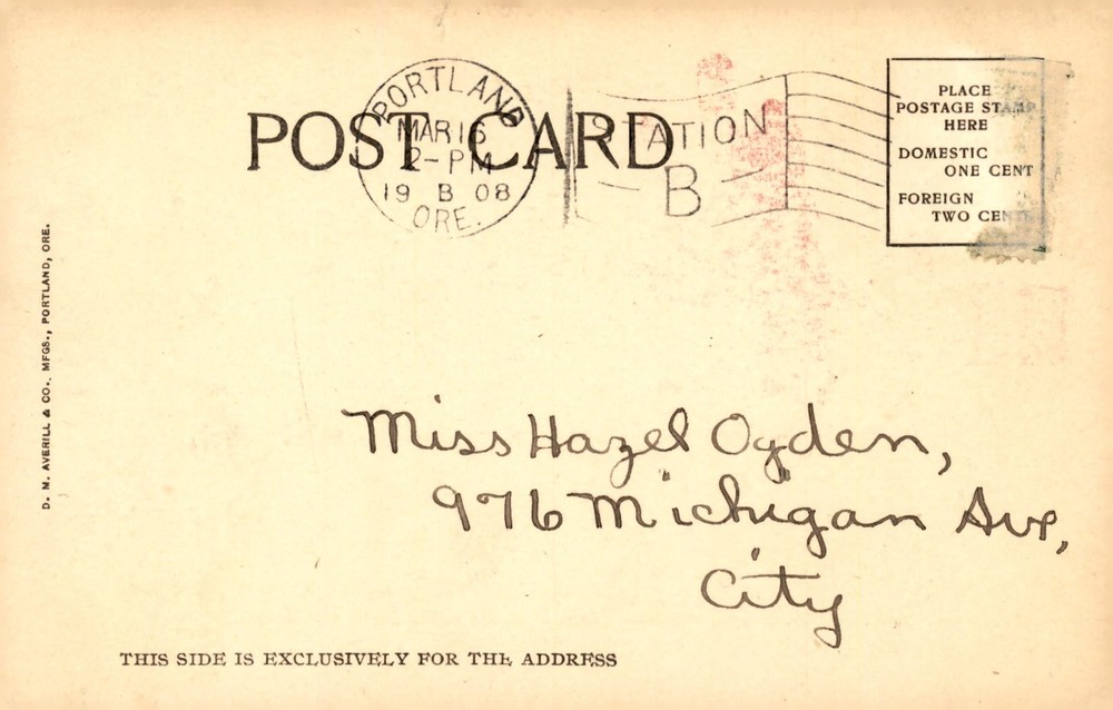 Greetings from your friend and schoolmate Gladys. Sending you a postcard featuring the Phantom Ship at Crater Lake, Oregon. Manufactured by D. M. Averill & Co. in Portland.