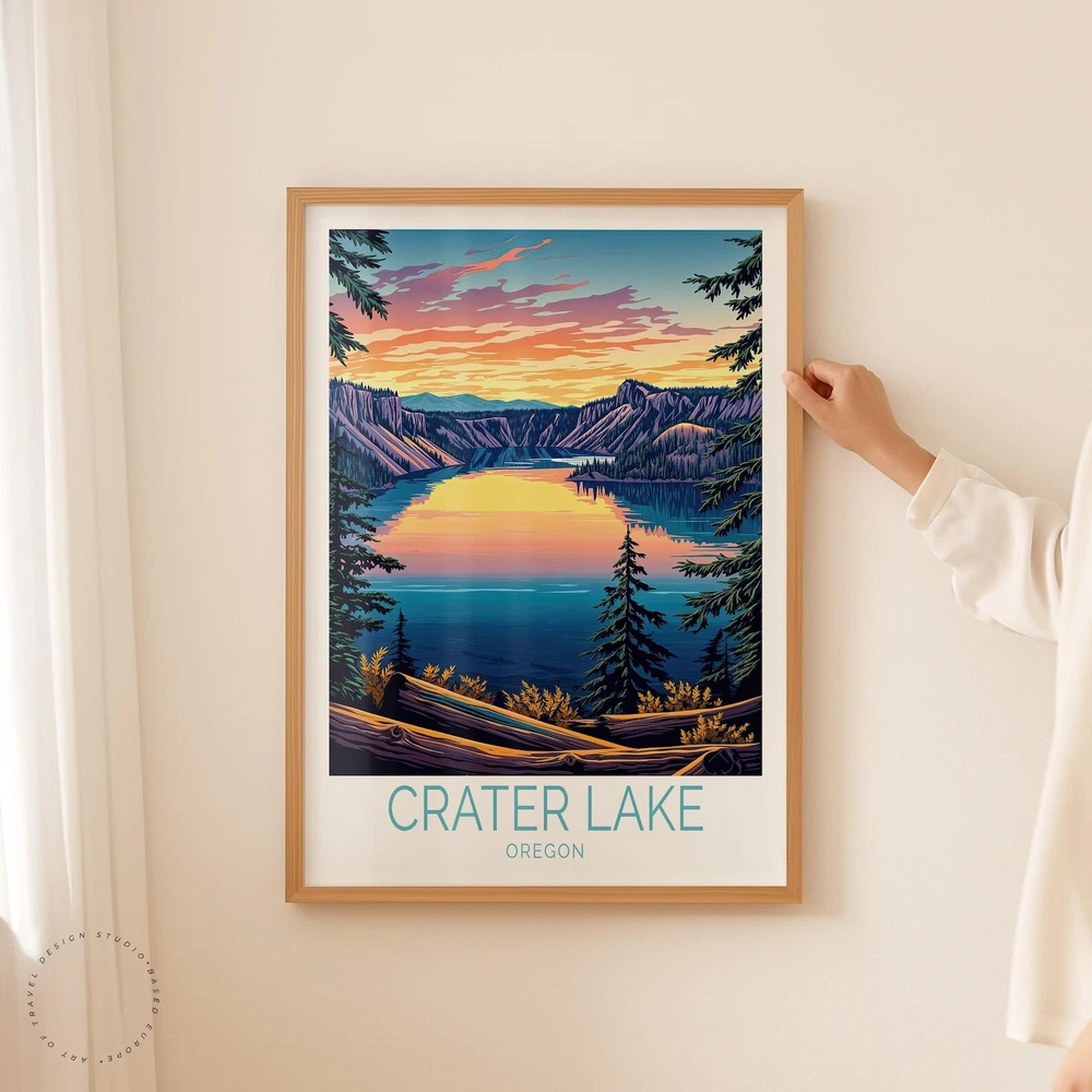 Crater Lake Oregon Travel Poster Crater Lake National Park Print Oregon Wall Art Custom Travel Poster Birthday Gifts Material: Premium luster photo paper Print type: Inkjet printing One side printed + The finish provides the highest possible resolution and color saturation + Lasts up to 200 years in color and 400 years in black-and-white + Printed on high-quality resin-coated photo base paper medium + Posters can be hung with double-sided tape, tacks, or framed + Hand washing with a gentle cry cloth is recommended for extended durability I will hand select the best choice of paper for your chosen design to ensure top quality results for a beautiful, bright and luxurious print. All prints are sealed in cellophane slips for protection during transportation, and are shipped in a protective cardboard envelope.