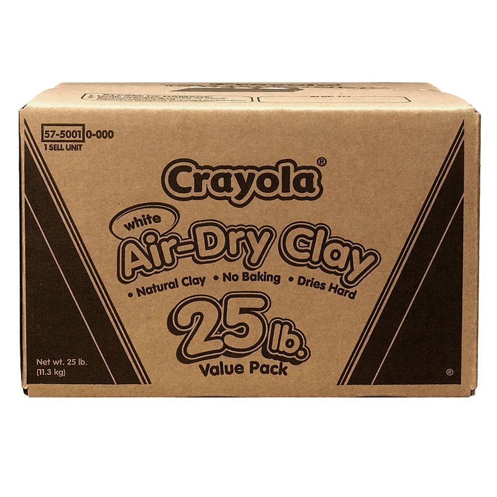 CRAYOLA MODELING CLAY: 2.5 Lbs. of Natural Earth Clay in white. EASY TO USE: Smoother, finer and less sticky than traditional clay, it softens with water. AIR DRY CLAY: This no bake clay is ideal for a variety of crafts, allowing you to save your work when complete by air drying clay for 72 hours. It's air dry to the touch in 24 hours. ART SUPPLIES: Great for group activities or classroom art supplies for kids.