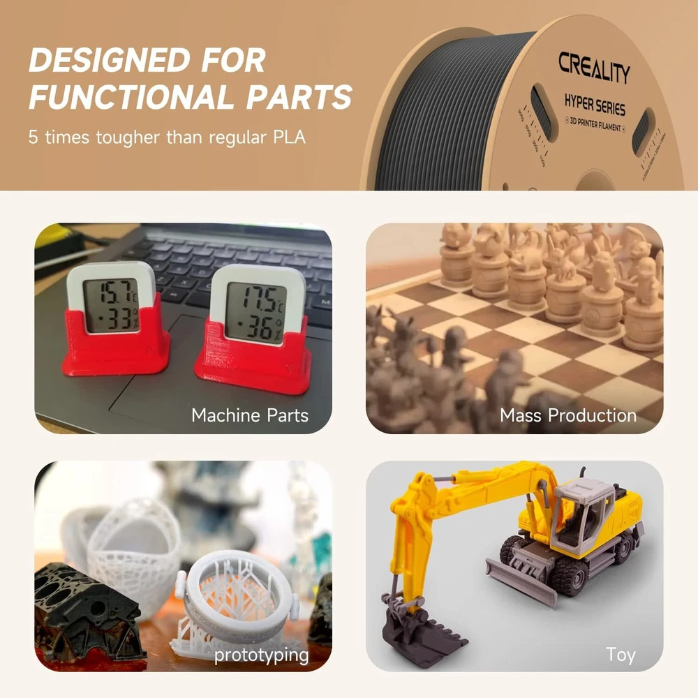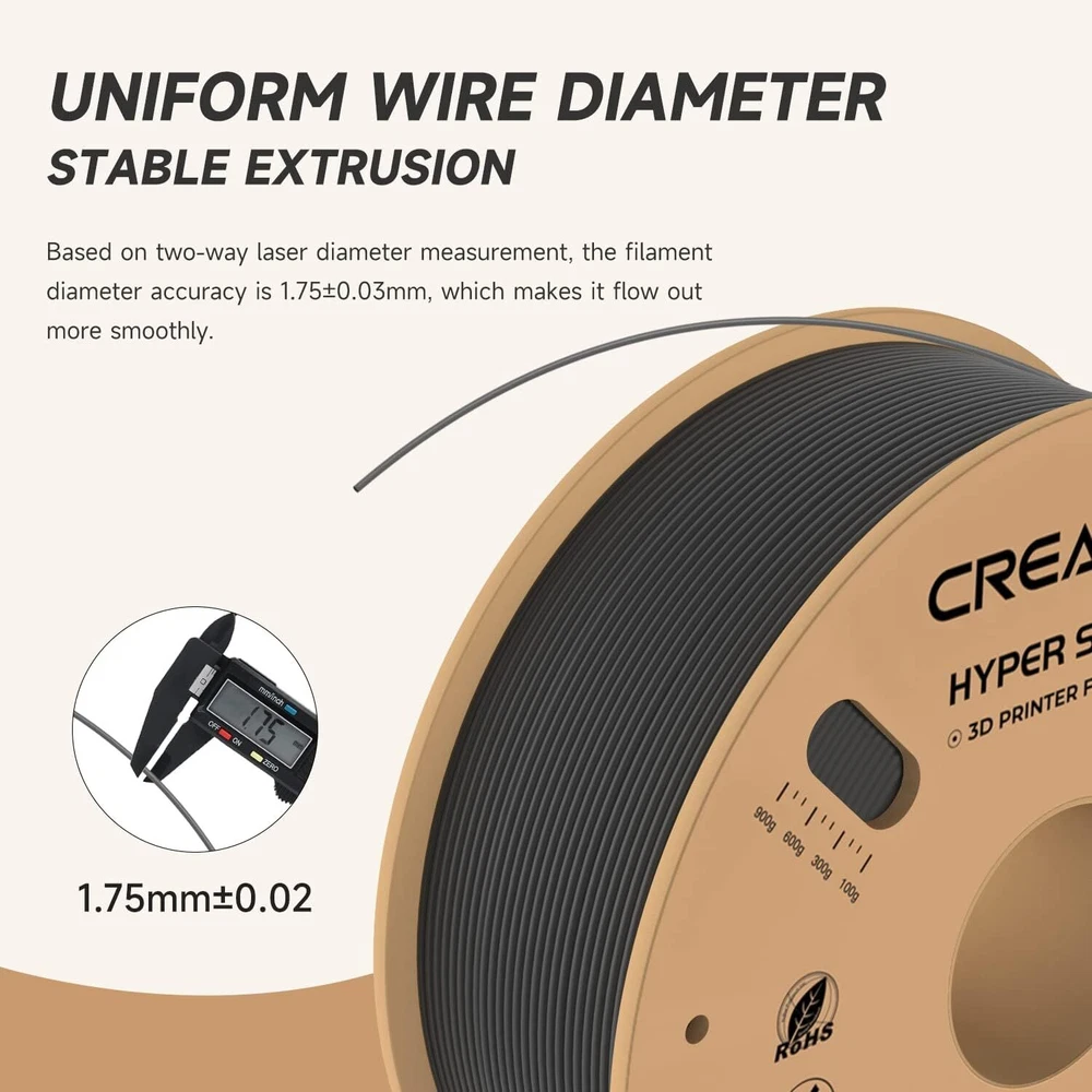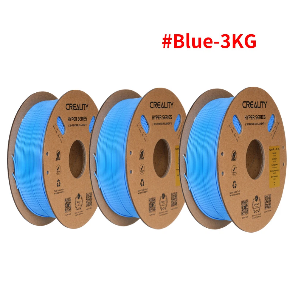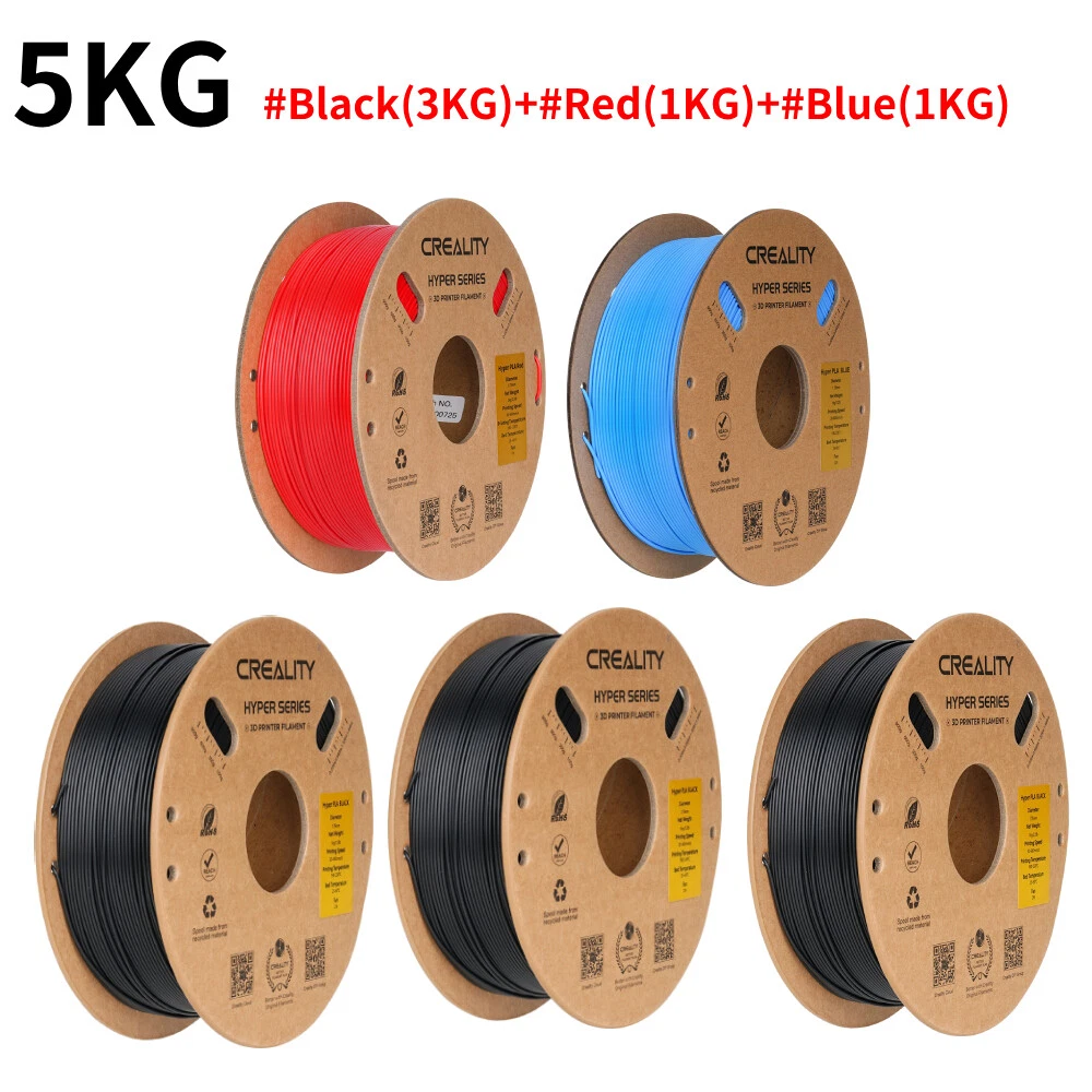 Title Resin Other K1 Series DIY Printer Laser Engraver 3D Printer Accessories 3D Printer Filament Lcd Printer 3D Scanner Creality Hyper PLA 3D Printing Filament 1.75mm 3KG/5KG/10KG 30-600mm/s Speed Product Description Product Name: Hyper Series PLA Wire Diameter:1.75±0.03mm Net Weight:1Kg/2.2lb Cross Weight:1.29Kg/2.8lb Package Size:210*210*70mm Density:1.25g/cm3 Tensile Strength (X-Y):52.991Mpa Tensile Modulus(X-Y):1146.064 Elongation at Break:6.304% Bending Strength (X-Y):92.381Mpa Flexural Modulus:(X-Y):2490.178Mpa Charpy Impact Strength(X-Y):8.8344kJ/m2 Printing Temperature:190-230℃ Hot Bed Temperature:250~600 Printing Speed:30-600mm/s Fan:100% Printing Platform: Carbon Silicon, PEI Platform Board, Textured Paper, PVP Solid Glue Product Features HIGH SPEED PLA: Creality 3D printer filament Pro vacuum sealed with desiccants in a transparent bag. STRONGER TOUGHNESS: Toughness enhancement,Stable spool less-tangle, Make printing smoother. SIZE ACCURACY: Filament accuracy is 1.75mm ±0.03 mm, 1 kg (2.2 pounds).strict quality control make a reassuring printing experience. BEGINNER & EXPERT FRIENDLY: Creality 3D Printing Filaments making it easy for novice users to get started with basic settings. Seasoned printers can push their designs to the limit without worrying about purity, tolerance or printing issues. WIDE COMPATIBILITY: Works ferfectly with most 3D printers on the market, Such as Ender 3, Ender 3 S1,Ender 3 pro,Ender 3v2, Ender 5 S1, Ender 5 pro, CR 6, A 8, CR Model PETG PLA Ender PLA Ender PLA+ Hyper PLA HP Ultra PLA Silk Matte PLA Available Colors 8 Colors Optional 29 Colors Optional 10 Colors Optional 6 Colors Optional 5 Colors Optional 7 Colors Optional 6 Colors Optional 6 Colors Optional Available Materials PETG, ABS, TPU PLA, Silk, Wood, Carbon, MATTE PLA, PLA+ PLA, PLA+ PLA, ABS PLA, TPU, ABS, ASA PLA Silk PLA Matte Filament diameter 1.75mm±0.02mm 1.75mm±0.02mm 1.75mm±0.02mm 1.75mm±0.02mm 1.75mm±0.02mm 1.75mm±0.02mm 1.75mm±0.02mm 1.75mm±0.02mm Printing temperature 230-250℃ 190-230℃ 190-230℃ 190-230℃ 190-230℃ 190-230℃ 190-230℃ 190-230℃ hotbed temperature 60-100℃ no heating -60℃ no heating-60℃ no heating-60℃ 25℃-60℃ no heating-60℃ no heating-60℃ no heating-60℃ Printing Speed 40-80mm/s 40-100mm/s 40-100mm/s 40-100mm/s 30-600mm/s 40-100mm/s 40-100mm/s 30-600mm/s Tensile Strength 48-51Mpa 39MPa 34MPa 34MPa 52.99MPa 40-50MPa 35-40MPa 45-50MPa Bending Strenght 76-86Mpa 71MPa 34MPa 77MPa 92.38MPa 70-80MPa 55-59MPa 35-40MPa Application Scenarios Lampshades, accessories, model Toys, artwork, models, tools Toy,artwork,daily tool,model Animation figures, toys Anime Figures, Daily Tools Anime Figures,End-use Parts Anime Figures, Daily Tools Anime Figures, Daily Tools Feature 1 Non-toxic, Good Toughness Smooth, Low shrinkage, No warp without Warping, Less Tangle Without Breakage 600mm/s High-speed Printing BASF's Recommended Without Breakage Without Breakage Feature 2 Stability & Moisture Proof Pretty, Tidy, Orderly Without Clog, Easy to Print High-quality, Easy to Print Strong Tensile Strength Less Bubbles, No Odor Silky Touch ,Delicate ,Delicate Matte texture experience Fashinable colors Easy to remove Payment Delivery Terms of sales About us Contact us Payment We accept payment via Payoneer. Please accomplish payment within 5 business days after you won the item. Delivery All your orders will be shipped within 1-2 business days and updated tracking info. Please make sure your address is full and correct, so that your order will be soon shipped and delivered smoothly. Most orders will adopt standard shipping, which usually needs 3-5 biz days. Any PO BOX addresses need to be confirmed if delivery or not. Terms of sales 1-month-returning for all orders after they are proved defective/damaged/faulty (videos or photos about it are preferred). Address on the package is not the return address, please email us firstly to get the correct return address. About us * Founded in 2014 by four 3D printing enthusiasts, Creality is a top global manufacturer of 3D printers. Our range of products includes DIY and resin 3D printers, 3D scanners, laser engravers, and filaments. Currently we host four brands of 3D printers: Creality as the master brand, and the three sub-brands of Ender, HALOT and Sermoon. Capitalizing on our innovatively leading technologies and products, we also offer consumer and professional printing solutions for makers, designers, schools and enterprises. Contact us Customer Service Hours: 9:00AM - 18:00PM BST (Beijing Standard Time) . You can also contact our official website customer support.
