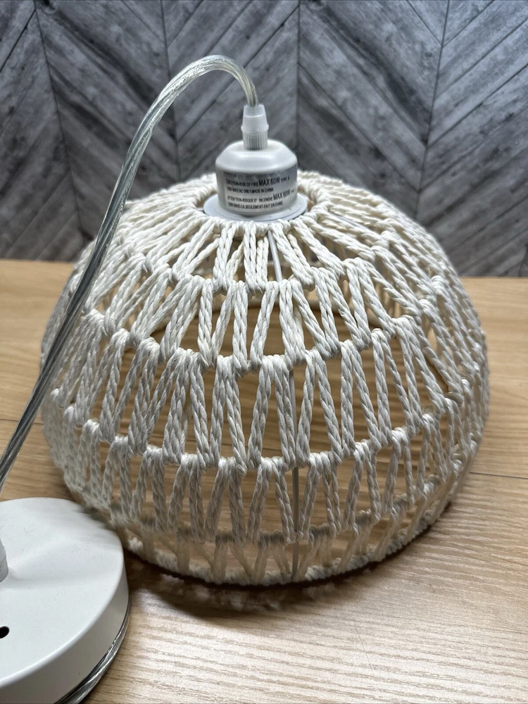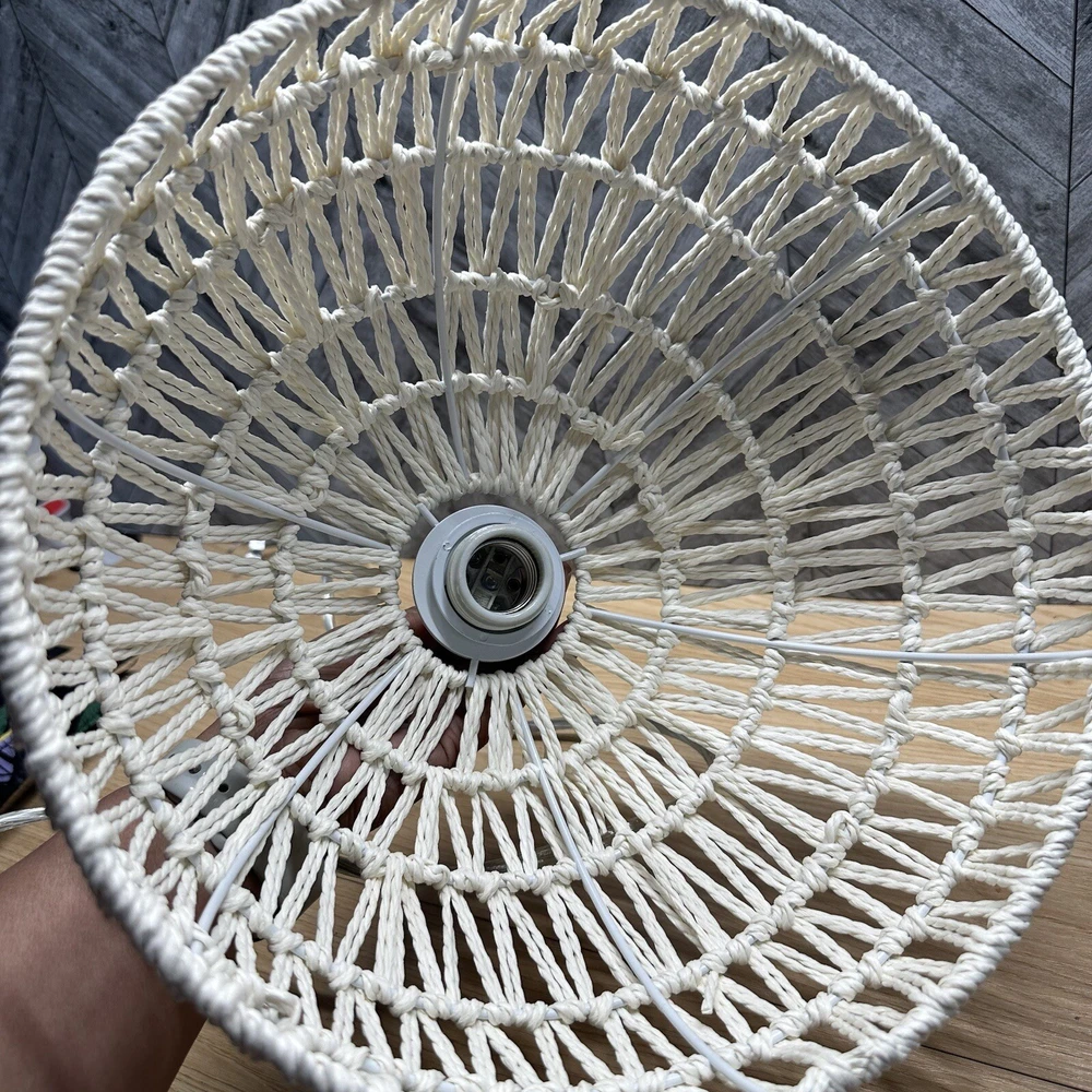 Cream Rope Woven Boho Pendant Light,Rattan Wicker Hanging Ceiling Light Fixture