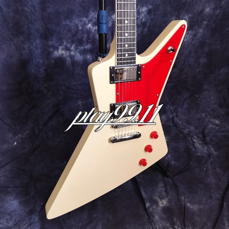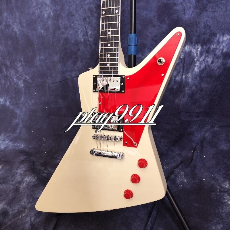Cream White Explorer 70s Model Chrome Hardware Electric Guitar Red Pick Guard Welcome to my store. My team has been making musical instruments for many years. I will try my best to provide the best item for you! Goods condition Body:Mahogany Neck: Mahogany Fingerboard: Black Nut width: 43 mm Scale Length:24.7 inch Joint:Bolt on Hardware:Chrome Pickups:2 Humbuckers Pickup Switc h:3-ways Electronic:1 Volume 2 Tone Bridge:T-O-M ABOUT THE PICTURES The pictures are taken in our factories by ourselves. Each guitar is different from others because of the light in room or some other reasons .So there are maybe some differences between the pictures and the guitar you get. Every guitar cannot be the same in 100%, the pictures of the guitar that you see is just one of them. If you want some details about the guitar, please contact me. OUR GUARAN TEE We test every guitar (such as buzzing, sound test, workmanship) is in good condition before it is shipped out. When you receive the guitar, if you meet some problems like readjustment the strings or you are not happy with our guitar, please let me know immediately and we will try our best to meet you satisfaction. CUSTOMIZED CEN TER Head stocks are not pictured per our policy. Custom Head stocks are available upon request from our factory custom shop. Please contact us for details. All customized products are non-returnable. SHIPPIN G Once payment has been confirmed, your item will be shipped within 3 or 30 business working days. That depends on specific goods deliver ways.The speed also base on Custom Clearance Speed, which we can't control .So if you want this for your gig next weekend it probably wont make it on time, so please keep that in mind when ordering. PACKI NG We use the carton which is designed for the International transport to package the products you ordered. And we can guarantee the items will not be damaged in the way of transportation. RETURN PO LICY If the item you received is broken or defective, please contact me immediately and return it within 3 days after you received it with the original or approved packaging. After we received it, we will give you a Full-Refund or Exchange. Buyers are responsible for return shopping costs. If you want to replace it, we will send a new one to you and then forward a shipping label. For missing or replacement parts(from the original order), we will ship them to you. Please read the RETURN POLICY before you order it! FEEDBA CK Thank you for your great comments and feedback. (a) When you are satisfied with your purchase, we sincerely hope that you can give us a positive feedback. Again, we will give you a positive feedback. (b) If you are dissatisfied with your purchase, please contact us submitting a neutral or negative feedback. We will respond to you in 24 hours and work with you until you are satisfied.