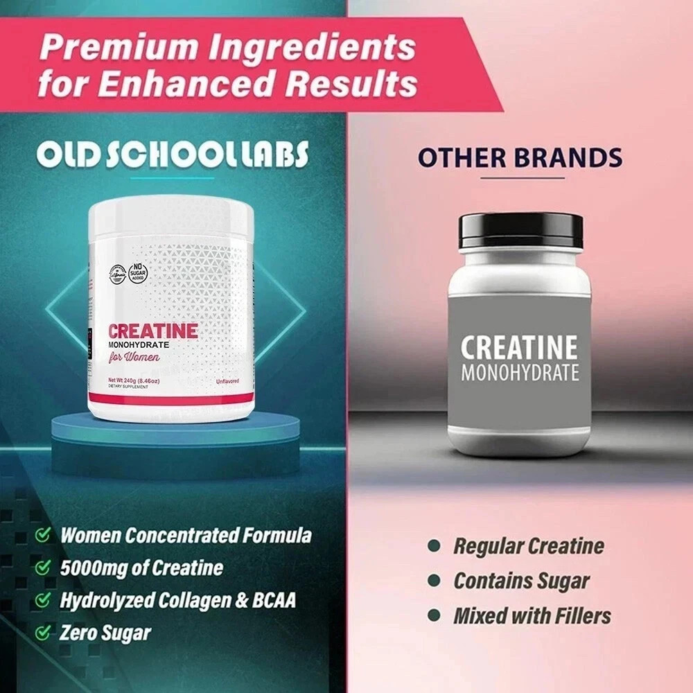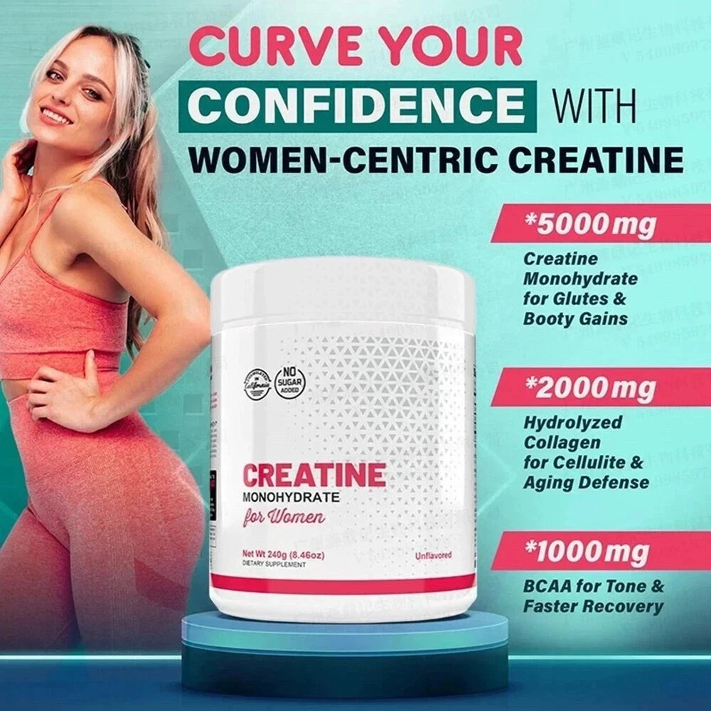 Creatine Monohydrate 5000mg for Women – with 2g Collagen & 1g BCAA | 240g (30 Servings) Unleash your strength, recovery, and beauty from within with our premium Creatine Monohydrate powder , specially formulated for women. Each serving delivers a powerful 5000mg of pure creatine monohydrate , combined with 2g of hydrolyzed collagen for skin, hair, and joint support, plus 1g of BCAAs for muscle recovery and endurance. ✅ Strength & Performance Support – 5000mg Creatine Monohydrate helps improve power, energy, and workout performance. ✅ Collagen for Women’s Wellness – 2g Collagen supports healthy skin, hair, nails, and joint comfort. ✅ BCAA Recovery Boost – 1g Branched Chain Amino Acids aids in faster muscle recovery and reduced fatigue. ✅ Perfect Balance Formula – Designed for women seeking fitness, beauty, and overall health support. ✅ 30 Servings Per Container – 240g total for a full month of performance and wellness benefits. Why Choose Our Creatine for Women? Combines Creatine + Collagen + BCAA in one formula Supports lean muscle, strength, and feminine wellness Great for gym workouts, sports, and active lifestyles Mixes easily with water or your favorite shake Suggested Use: Mix one scoop with 6–8 oz of water or beverage of choice. Use daily for best results.