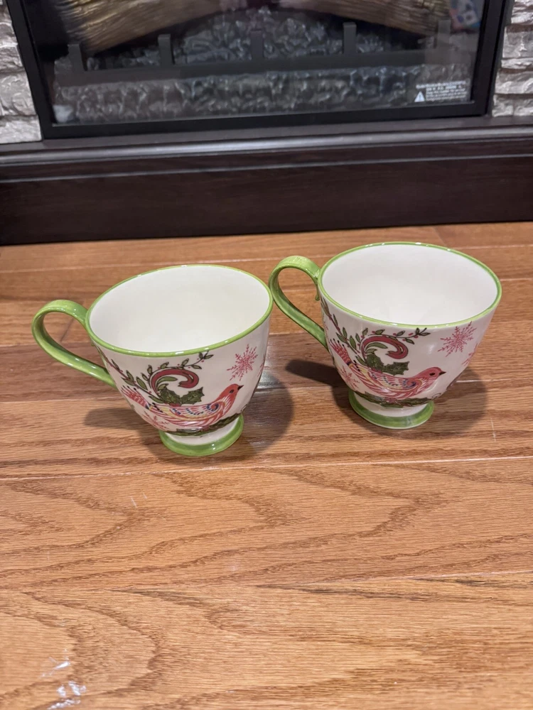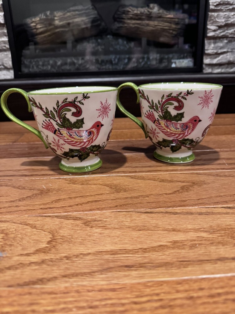 Add a festive touch to your Christmas morning routine with this set of two Creative Co-op by Katie McRostie pedestal mugs. These mugs are perfect for enjoying your favorite hot beverage and feature a colorful design of birds perched on a branch. The mugs are made of high-quality pottery and glass, ensuring their durability and long-lasting use. Use these mugs for your holiday gatherings or as a gift for your loved ones. Their unique design and intricate details make them a great addition to any collection. Whether you are a collector or just looking for a beautiful mug to enjoy your morning coffee, these Creative Co-op mugs are sure to impress.