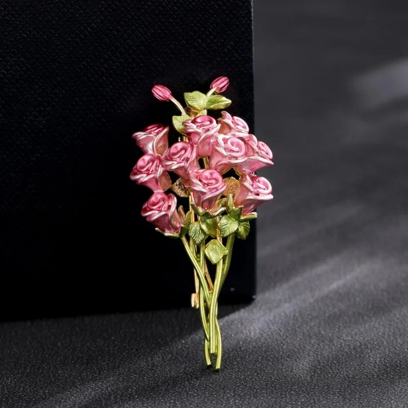 Creative French Vintage Pink Rose Brooch Enamel Delicate Pin Suits Accessories