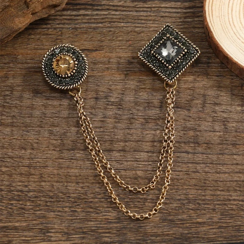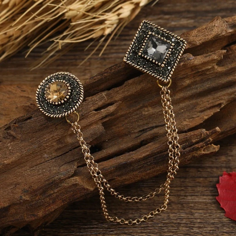 Creative New Retro Rhinestone Chain Brooch Fashion Simple Pin Accessories